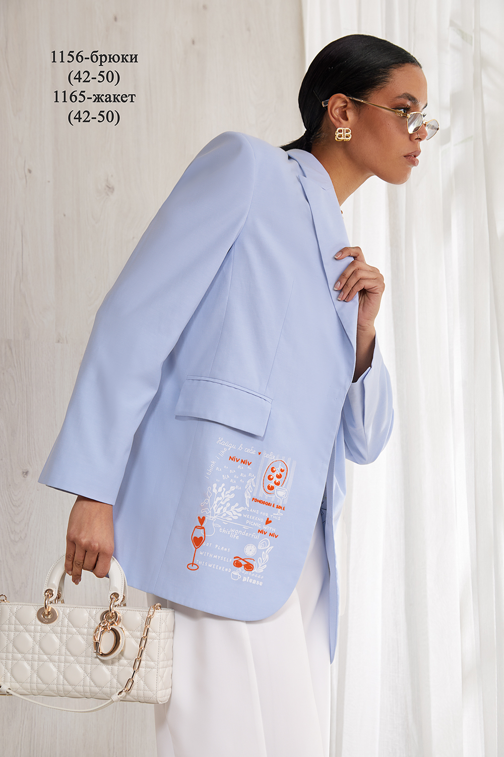Яркие авторские принты на жакете придают изделию индивидуальность и неповторимость.