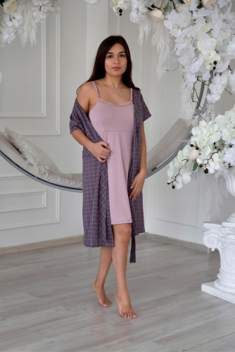 Ночная сорочка Вера изготовлена из натурального хлопка высокого качества, материал мягкий, нежный и приятный к телу. Модель сидит по фигуре, имеет V-образный вырез и обрамлено легким ажурным кружевом, подчеркивающим линию груди. В сорочке удобно и комфортно не только спать, но и ходить дома в качестве домашнего платья.