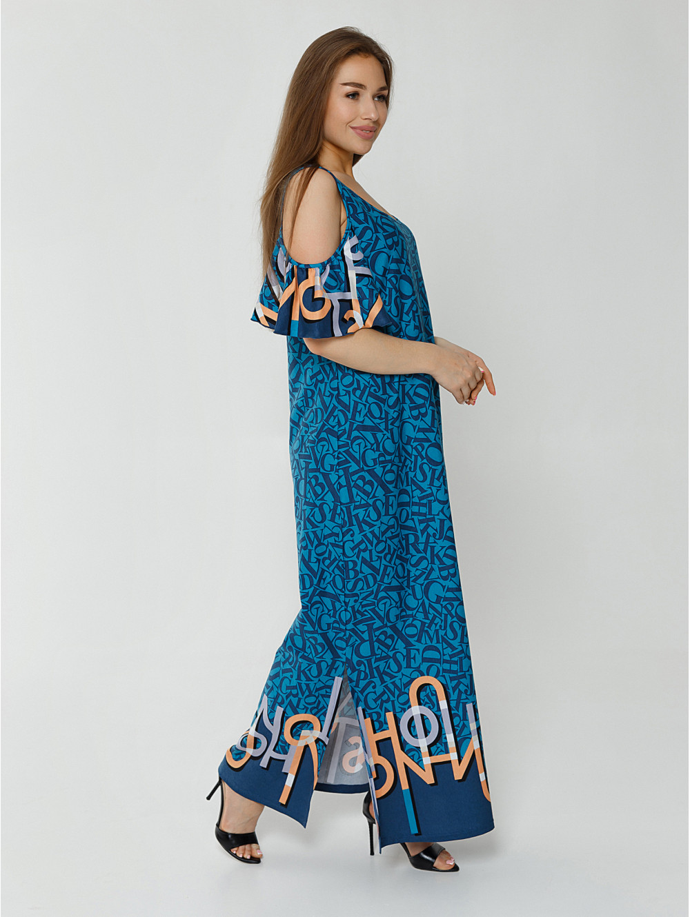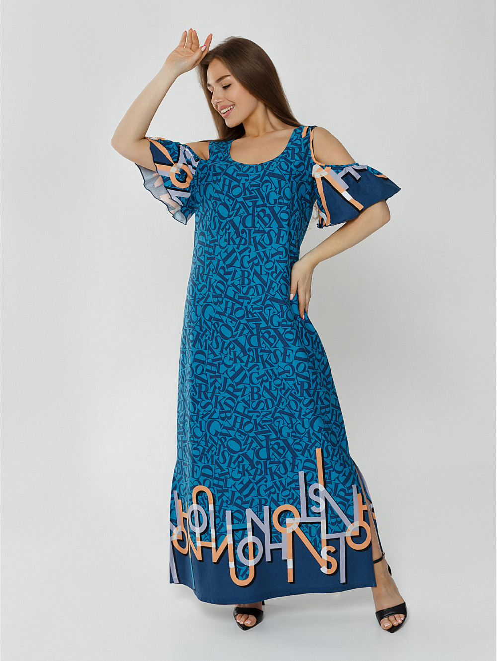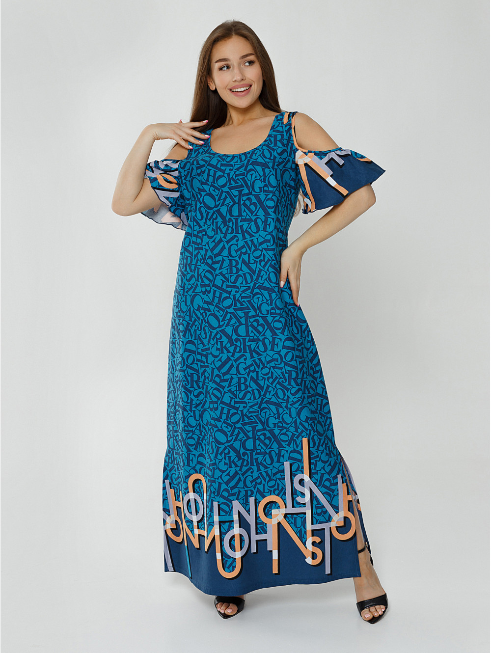 В жаркое время года требуется легкая, воздушная одежда, не стесняющая движений. В приоритете открытые, свободные фасоны. Как правило, для такого периода шьются летние платья из тонких, дышащих материалов.  Одно из таких вариантов – платье НОВЕЛЛА, изготовленное из 100% -го хлопка. Длинное с разрезами по бокам платье в форме трапеции дополняет рукав-волан с открытым плечом. Все это создает летний и приятный образ.