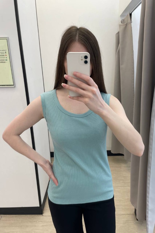 Джемпер прилегающего силуэта из эластичного полотна в рубчик. Круглый вырез горловины и линия проймы оформлены бейками.