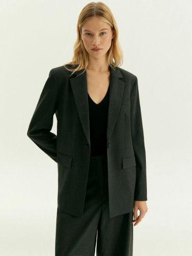 Жакет с имитацией худи отражает модную игру с деконструированными формами и создаёт эффект многослойности. Это креативный и комфортный вариант верхнего слоя на смену пальто и курткам. Можно застилизовать с простой белой рубашкой и леггинсами, можно носить с базовым денимом и костюмными брюками. Жакет может стать частью капсулы с комплектом emma из предыдущих коллекций
