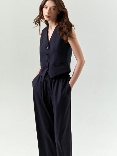 Жилет в синем цвете для актуальных образов на разные случаи жизни. Слегка приталенную модель отличает фигурная линия борта. Застёгивается на 4 пуговицы. Спереди расположены два кармана с листочкой. С помощью жилета можно создавать интересные образы с блузками, рубашками и трикотажными водолазками. Образ можно дополнить брюками или юбкой из комплекта ariana. Изделие выполнено из материала с высоким содержанием вискозы, на подкладке с вискозой.
