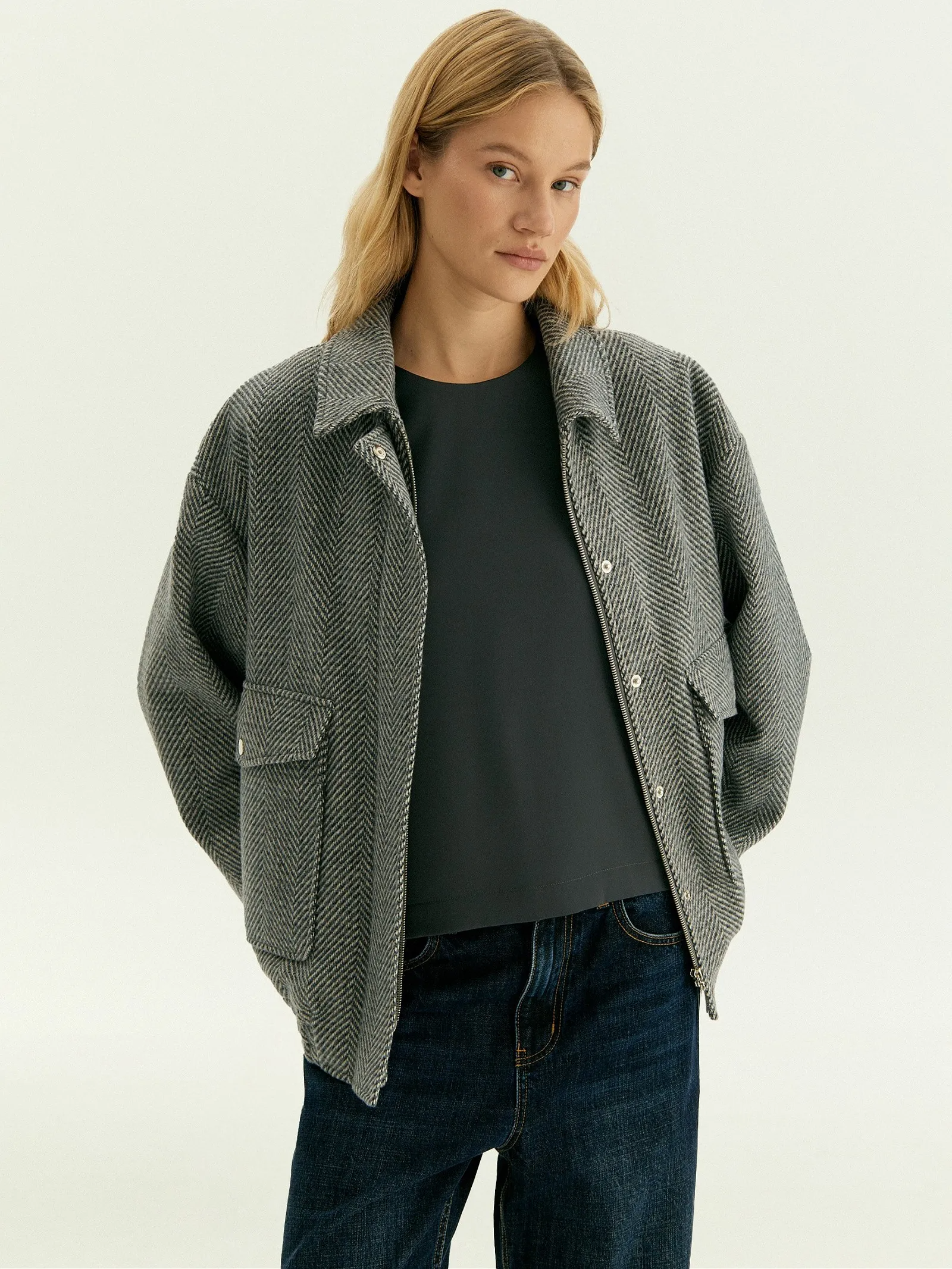 Бомбер из пальтовой ткани — стильный верх на межсезонье, для температур около 10-15°C.