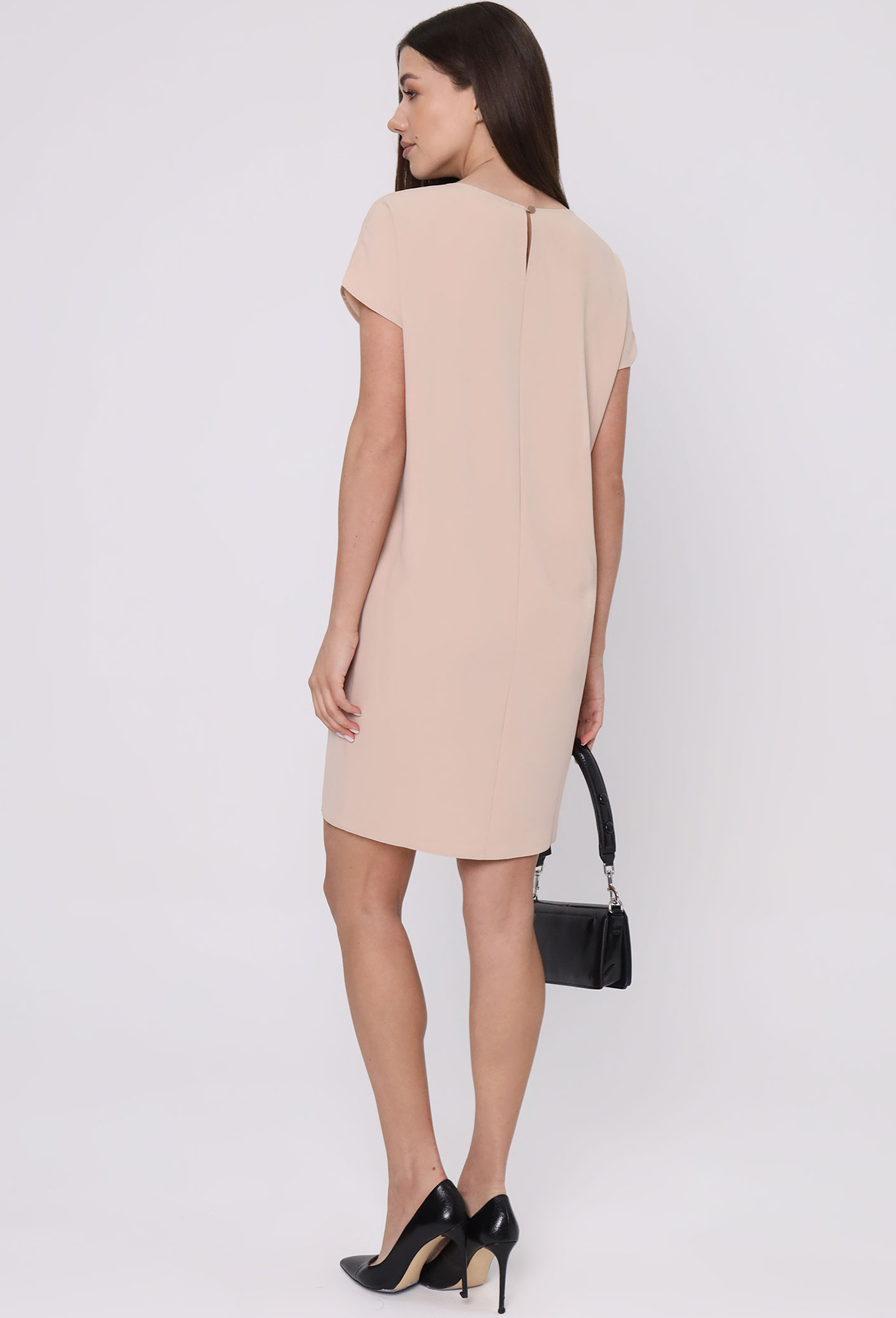 Трикотажное платье для женщин – практичная вещь, которая позволит вам создавать элегантные образы. Модель в классическом стиле, с коротким рукавом-реглан, круглым вырезом горловины.