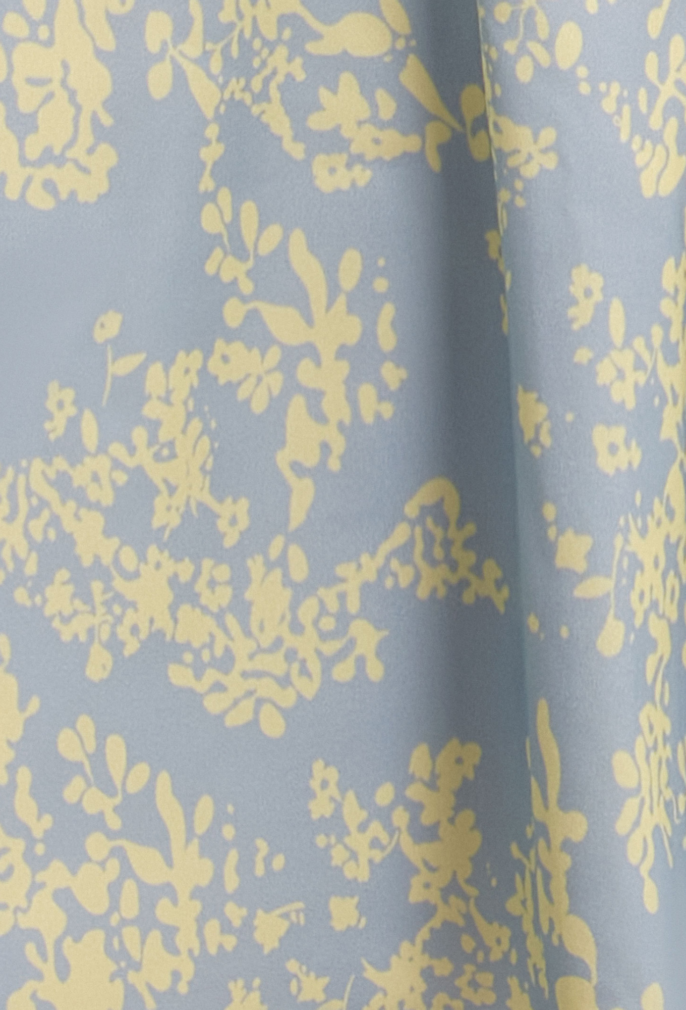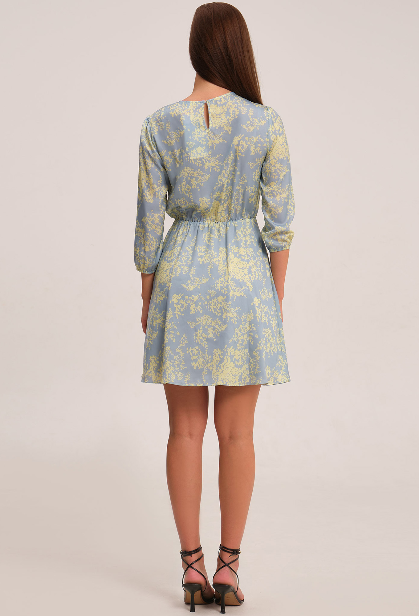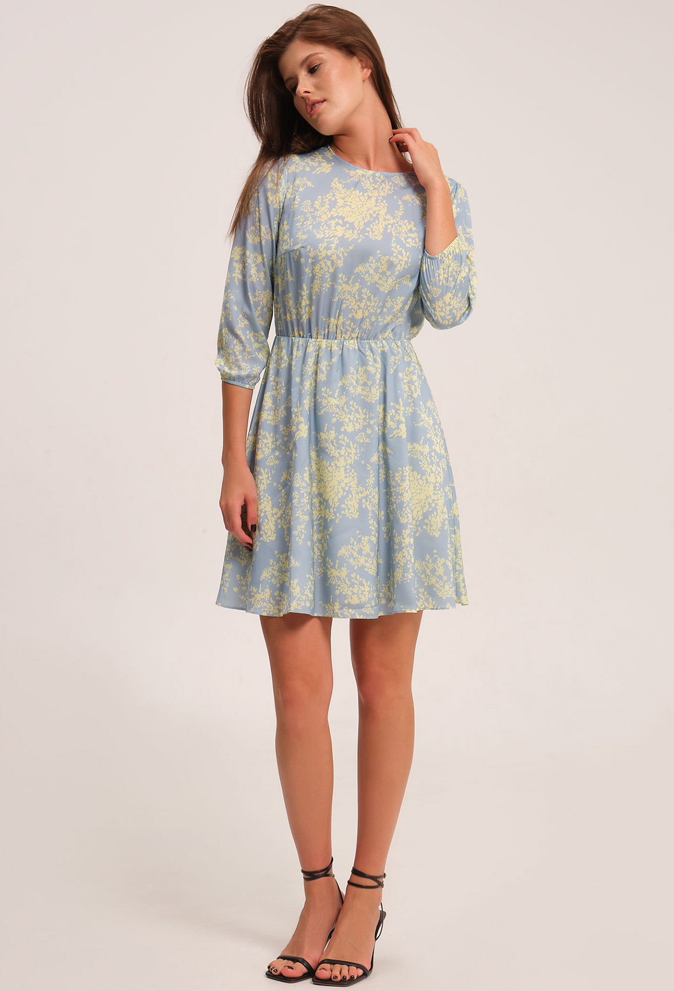 Даже повседневное платье может быть элегантным и особенным. Данная модель отлично подойдет девушке за счет приятной светлой расцветки и нежного растительного принта, короткое летнее платье будто сияет. Прямой крой, длина мини, рукав до локтя и тонкая резинка на талии.