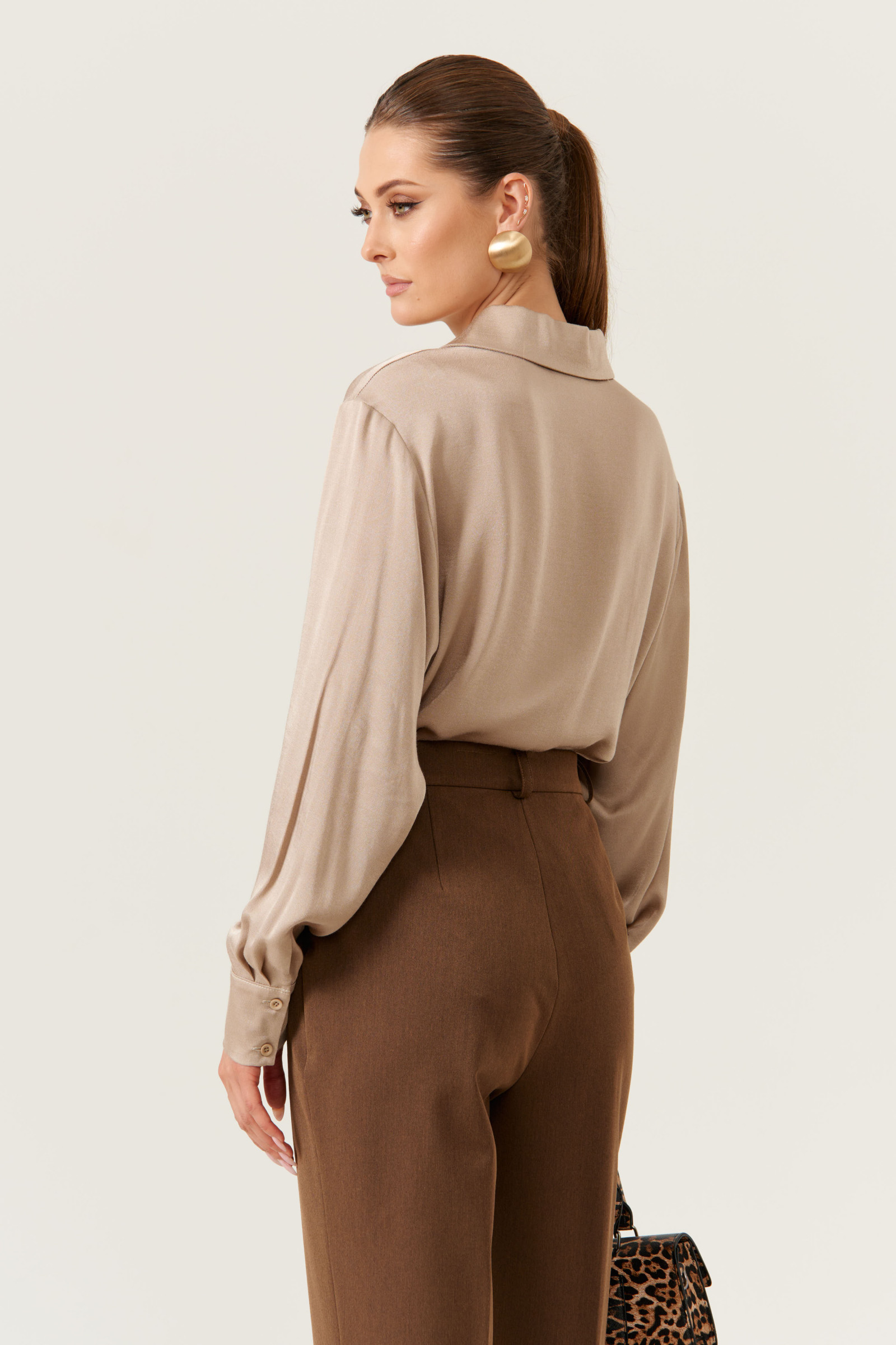 Эта стильная женская блузка бежевого оттенка идеально подойдет для повседневной носки. Выполненная в прямом силуэте, она обеспечивает комфорт и свободу движений. Ткань поливискозная, струящаяся, что придает изделию легкость и изящность. Перед украшен центральной бортовой застежкой на обметанные петли и пуговицы, а низ изделия выполнен с закругленным краем, добавляя изящества образу. Горловина оформлена классическим рубашечным воротником, а рукава завершены притачными манжетами с застежками на две обметанные петли и пуговицы — практично и стильно. Эта очень легкая и практичная блузка станет отличным выбором для ежедневных образов, сочетая комфорт с элегантностью и привлекательностью.