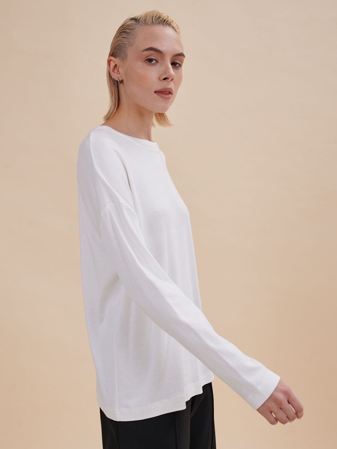 Лонгслив среднего объёма для женщин. Модель расслабленного силуэта дополнена комфортными прямыми длинными рукавами. Горловина обработана оригинальной обтачкой с открытым срезом и декоративной строчкой. В составе ткани преобладают высококачественные хлопок и модал (вискозное волокно) — джемпер дышащий, мягкий и приятный на ощупь. Лонгслив однотонный, без принта, неприхотлив в уходе. В линейке представлены следующие размеры: XS (42), S (44), M (46), L (48), XL (50). Такая футболка подходит не только женщинам и девушкам, это отличный лонгслив для девочек подростков. Модель представлена в следующих актуальных цветах: синий лонгслив, чёрный, голубой, белый. Лонгслив станет отличным дополнением повседневного летнего гардероба. Его также можно носить осенью и весной (демисезон) и зимой в качестве среднего слоя одежды. Кофта лонгслив подойдёт в качестве одежды для дома, сна, отдыха. Эта модель прекрасно сочетается с различными юбками, джинсами, брюками. Модный лонгслив женский — прекрасный подарок маме, сестре или подруге на любой праздник или просто в качестве знака внимания и заботы. Выбирайте нужный размер по таблице размеров на фото. Цвет товара на экране вашего устройства может отличаться от цвета изделия вживую.