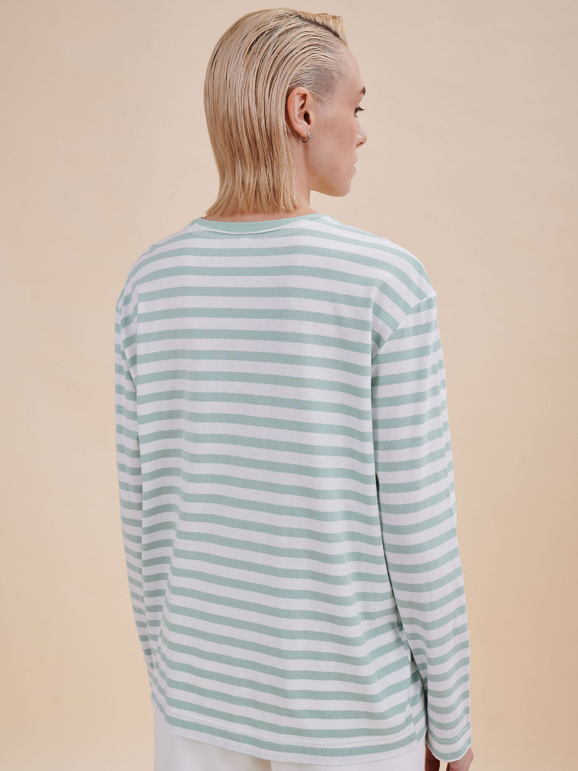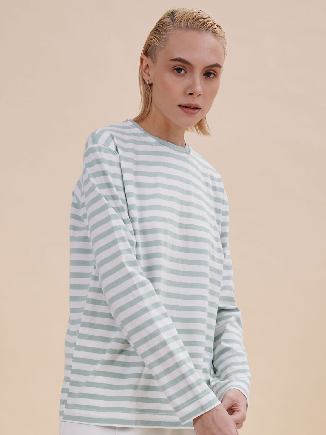 Лонгслив среднего объёма для женщин. Модель расслабленного силуэта в полоску дополнена комфортными прямыми длинными рукавами. Горловина обработана оригинальной обтачкой с открытым срезом и декоративной строчкой. В составе ткани 100% высококачественного хлопка — джемпер дышащий, мягкий и приятный на ощупь. Лонгслив однотонный, без принта, неприхотлив в уходе. В линейке представлены следующие размеры: XS (42), S (44), M (46), L (48), XL (50). Изделие подходит не только женщинам и девушкам, это отличный лонгслив для девочек подростков. Модель представлена в следующих актуальных цветах: синий лонгслив, зелёный, бежевый. Такой джемпер станет отличным дополнением повседневного летнего гардероба. Его также можно носить осенью и весной (демисезон) и зимой в качестве среднего слоя одежды. Кофта лонгслив подойдёт в качестве одежды для дома, сна, отдыха. Эта модель прекрасно сочетается с различными юбками, джинсами, брюками. Модный лонгслив женский — это прекрасный подарок маме, сестре или подруге на любой праздник или просто в качестве знака внимания и заботы. Выбирайте нужный размер по таблице размеров на фото. Цвет товара на экране вашего устройства может отличаться от цвета изделия вживую.