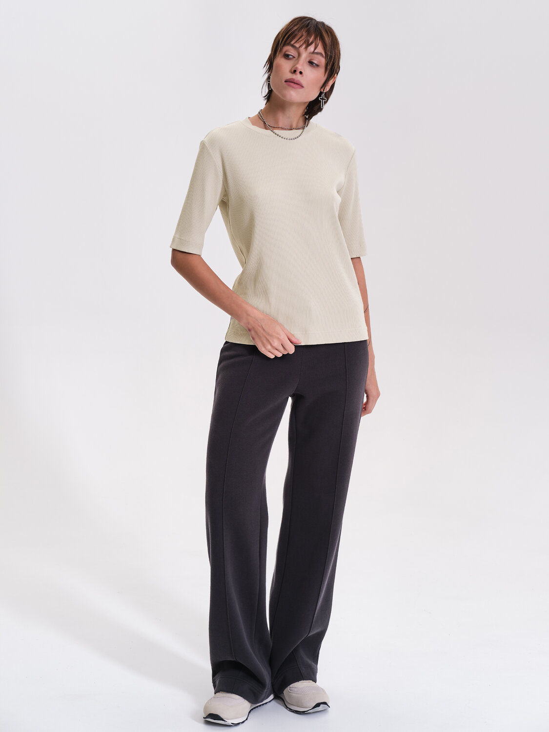 Футболка однотонная женская. Комфортная мягкая майка небольшого объёма станет отличным дополнением вашего повседневного гардероба. Модель выполнена из эластичной рибаны (ткань в рубчик), вырез горловины также обработан рибаной — она прекрасно держит форму, не растягивается, при этом футболку удобно надевать и снимать. Базовая футболка с рукавом длиной до локтя — актуальный тренд сезона. Изделие неприхотливо в уходе. Модель лаконичного дизайна, без принта. В составе ткани преобладают высококачественный хлопок и вискоза — майка мягкая, дышащая, приятная на ощупь. Эластан помогает сохранить первоначальную форму в течение длительного времени. Однотонная футболка выполнена в универсальных цветах, её легко комбинировать с различными брюками, шортами, юбками. Футболка женская без принта — базовый элемент гардероба, пригодится в любой ситуации. Однотонная футболка женская подходит для любого времени года, её можно носить как летом, так и в холодное время года в качестве среднего слоя одежды, а также на спорт. Помните о правильном уходе за изделием: рекомендуется стирать при температуре не выше 30 °C, без предварительного замачивания, с изнанки. Это поможет сохранить качество и цвет футболки на длительное время. Не забывайте о выборе правильного размера. Используйте таблицу размеров на фотографии, чтобы выбрать подходящий для себя вариант. Обратите внимание, что цвет товара на экране вашего устройства может отличаться от реального.