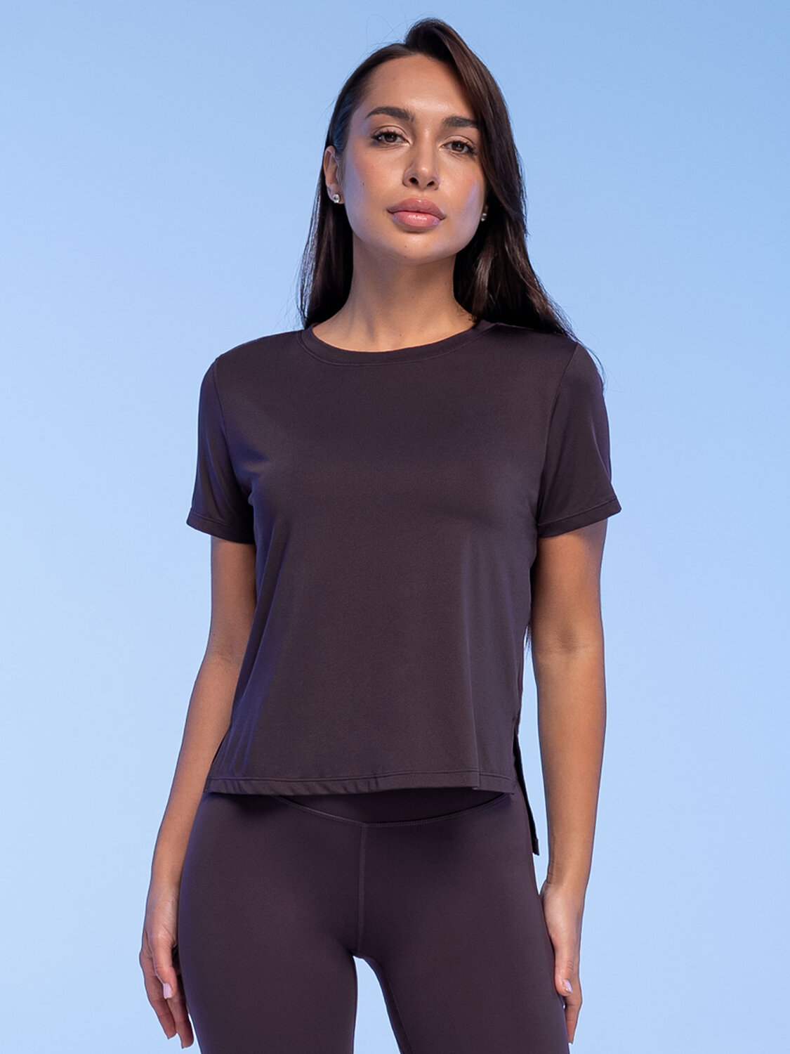 Спортивная женская футболка из эластичной ткани. Майка прямого силуэта с короткими рукавами выполнена из материала с обработкой Dri fit – ваша кожа остаётся сухой, и вы чувствуете себя комфортно во время тренировки. Женская спортивная футболка для фитнеса и йоги сделает тренировки легкими, движения свободными, а занятия спортом в радость. Спинка изделия немного длиннее переда, по бокам удобные разрезы. Комфортная майка для женщин подходит для тренировок и для занятий в тренажерном зале, пилатеса, для бега, для йоги и фитнеса, занятий танцами и прогулок. Футболка однотонная, без принта, неприхотлива в уходе. В составе ткани полиамид и эластан – топ легко стирается и быстро сохнет, надолго сохраняет первоначальные форму и цвет. Спортивная одежда для девушек прочно вошла в современные образы, стирая грань между повседневной и одеждой спортивного стиля. Модная футболка – это не просто одежда для фитнеса, это базовая вещь в женском гардеробе. Подходит женщинам и девушкам, а также это отличная футболка для девочек-подростков. В линейке представлены следующие размеры: XS (42), S (44), M (46), L (48), XL (50). Майку можно надевать под пиджак, под рубашку, в качестве первого слоя под одежду. Модель представлена в трёх цветах: синяя футболка, фиолетовая и чёрная. Она отлично сочетается с джинсами, спортивными легинсами, велосипедками. Идеальная футболка для спорта. Прекрасный подарок маме, сестре или подруге на любой праздник. Выбирайте нужный размер по таблице размеров на фото. Цвет товара на экране вашего устройства может отличаться от цвета изделия вживую.