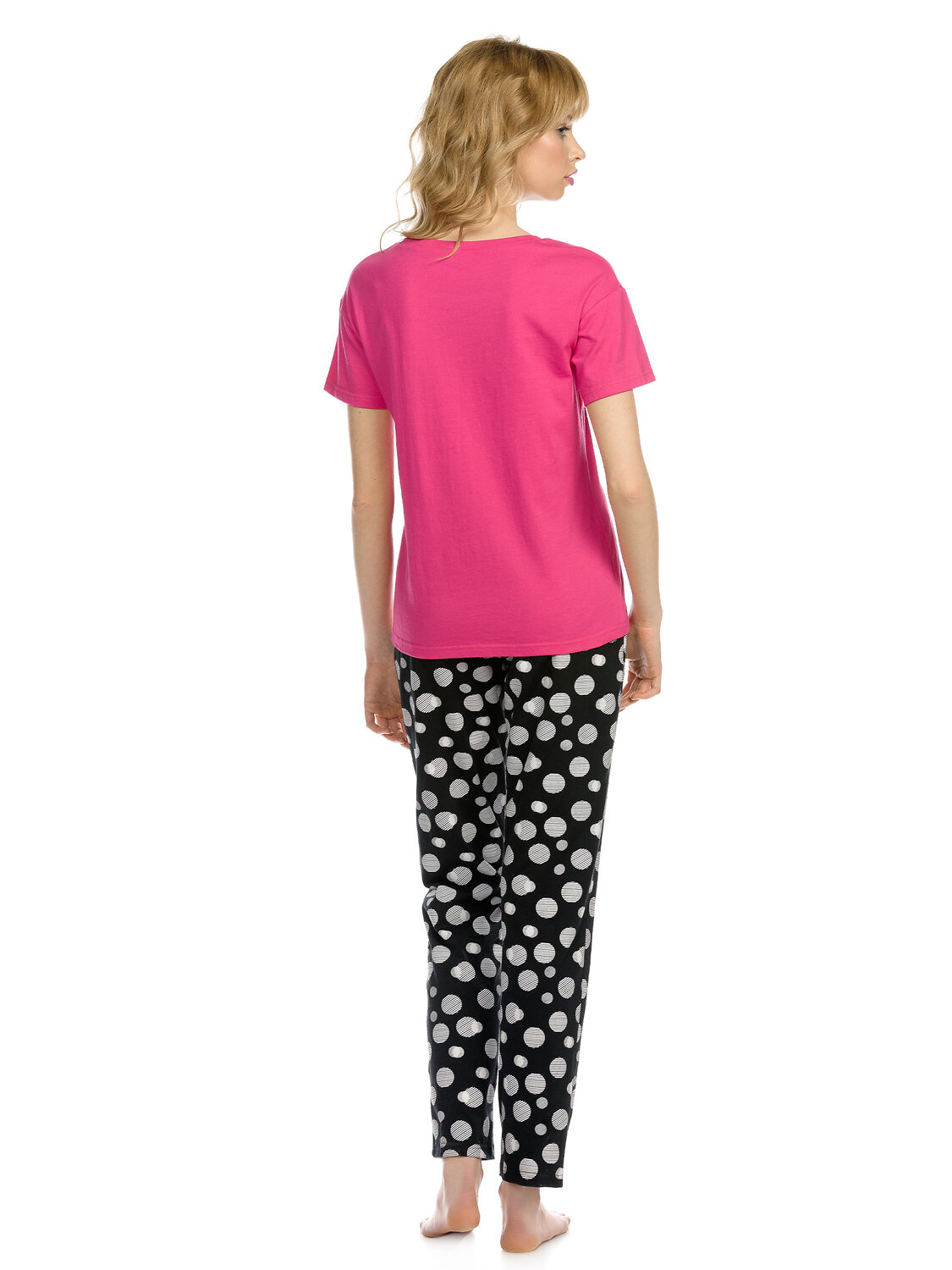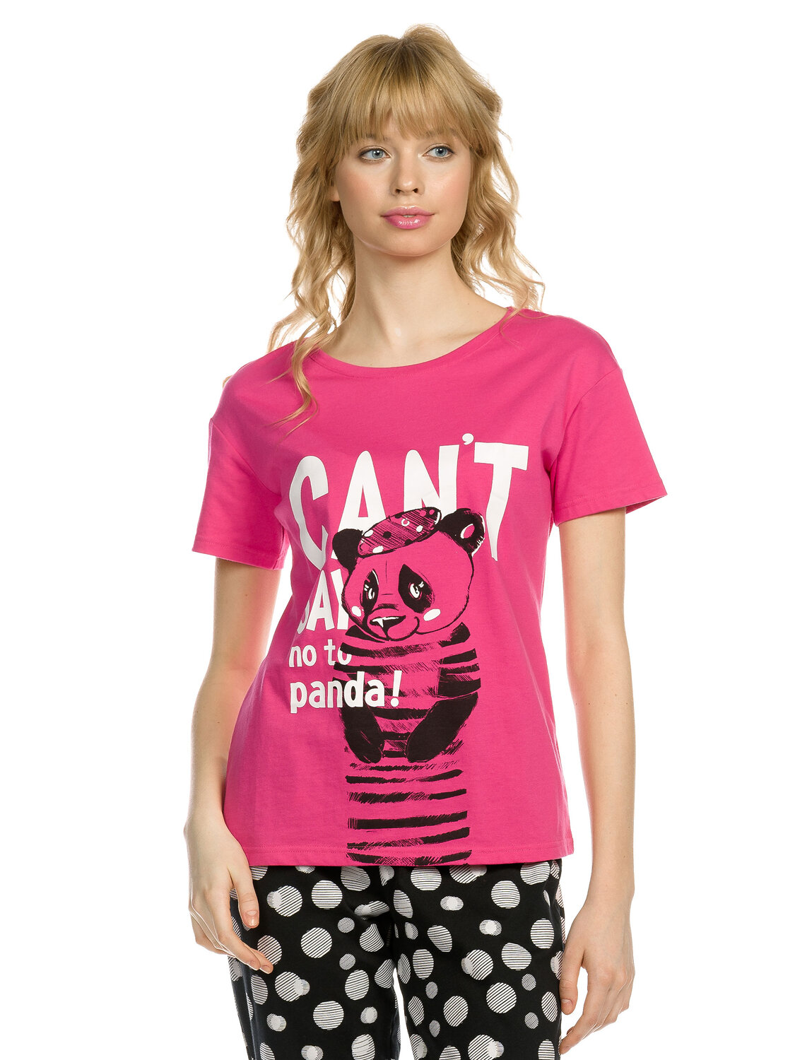 Комплект женский: футболка и брюки. Футболка прямого кроя среднего объема с втачным рукавом. Суперстойкий и эластичный принт. Перевод: "Не могу сказать нет панде". Брюки среднего объема на комфортной внутренней резинке.