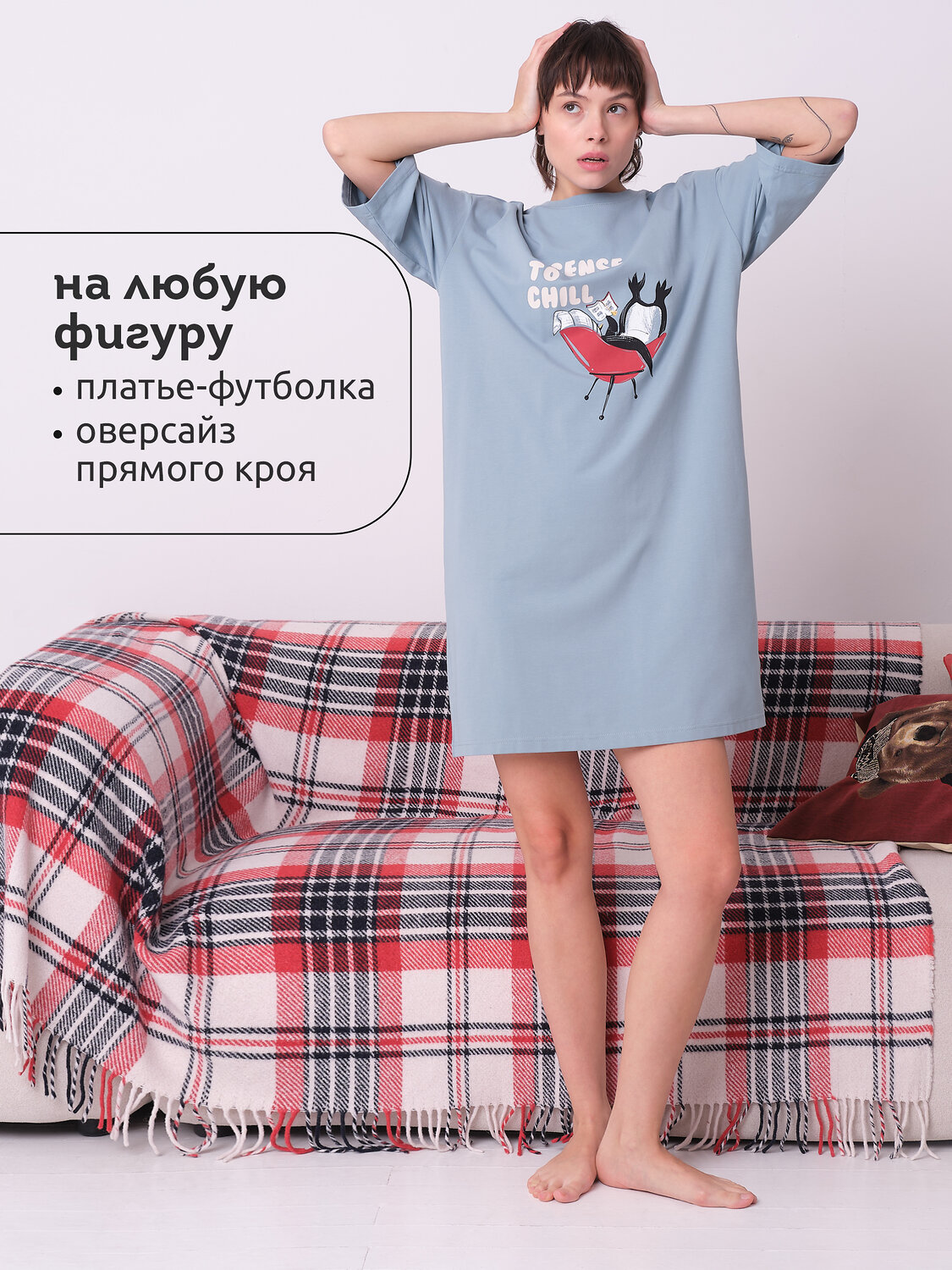 Платье домашнее женское оверсайз. Трикотажное платье оверсайз прямого кроя с коротким широким рукавом. Плечо спущено — модель максимально комфортная. Комфортное платье-футболка женское с принтом – базовый элемент женского гардероба.Туника женская свободного кроя подойдет для любой фигуры. В составе ткани изделия преобладает высококачественный хлопок – платье мягкое и отлично пропускает воздух, позволяя коже дышать. Эластан помогает модели надолго сохранить первоначальную форму. Модель украшена прикольным принтом, надпись переводится: «лецензия на чилл» — поймайте позитивное настроение! Принт эластичный и мягкий, великолепно переносит многочисленные стирки. Просторное платье в спортивном стиле подходит как женщинам, так и девушкам, девочкам-подросткам. Туника женская идеально для носки дома, комфортного сна, пижамной вечеринки, отдыха. Платье футболка подходит для повседневного летнего гардероба, прогулок, отдыха, пляжа. А также модель удобна для беременных. Помните о правильном уходе за изделием: рекомендуется стирать при температуре не выше 30 °C, без предварительного замачивания, с изнанки. Это поможет сохранить качество и цвет платья на длительное время. Не забывайте о выборе правильного размера. Используйте таблицу размеров на фотографии, чтобы выбрать подходящий для себя вариант. Обратите внимание, что цвет товара на экране вашего устройства может отличаться от реального.