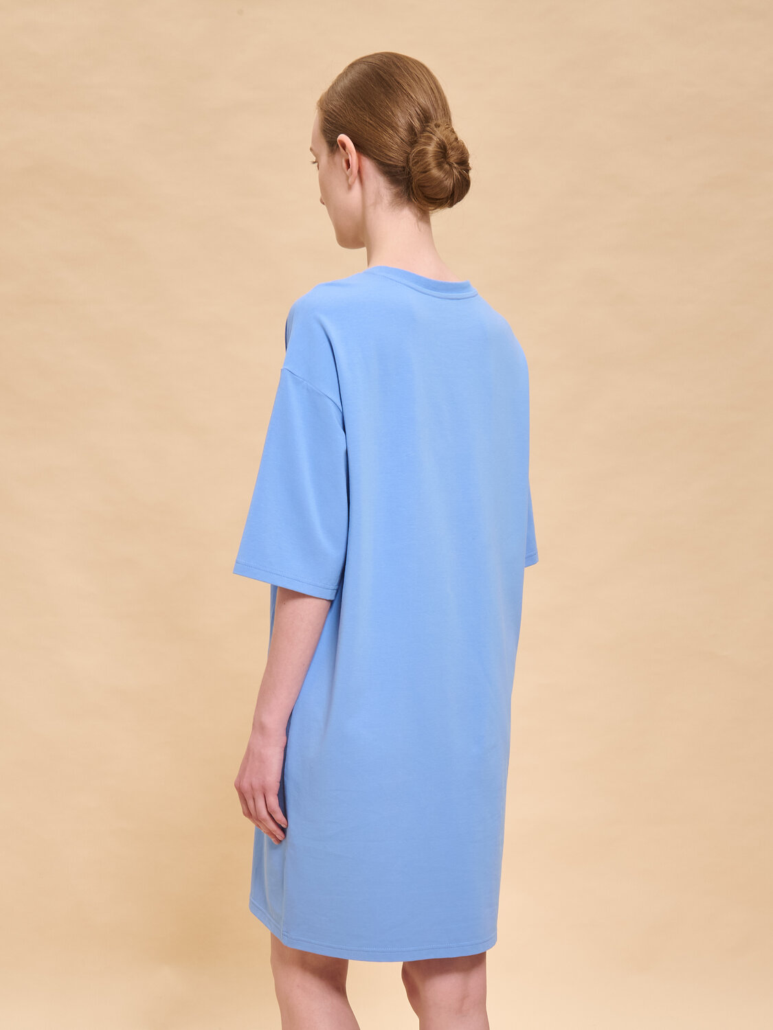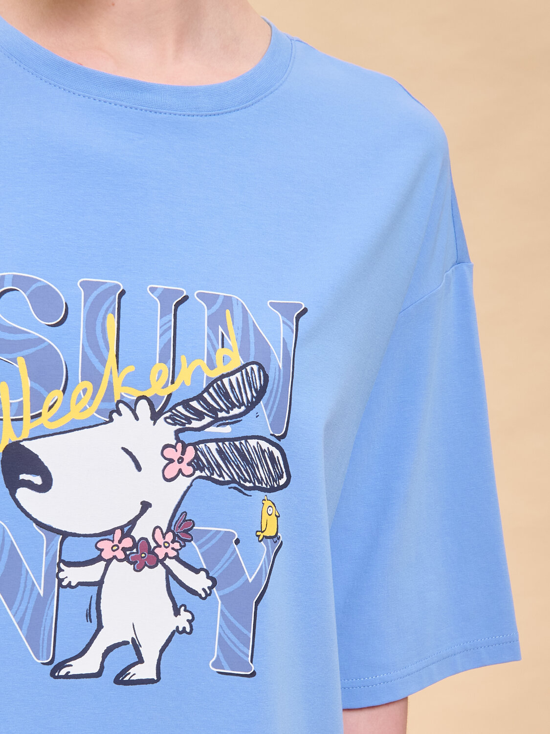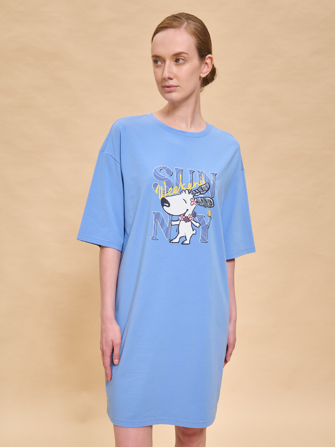 Платье футболка женское оверсайз. Трикотажное платье оверсайз прямого кроя с коротким широким рукавом. Плечо спущено — модель максимально комфортная. Комфортное платье-футболка с принтом – базовый элемент женского гардероба. Повседневное платье свободного кроя подойдет для любой фигуры. В составе ткани изделия преобладает высококачественный хлопок – платье мягкое и отлично пропускает воздух, позволяя коже дышать. Эластан помогает модели надолго сохранить первоначальную форму. Модель украшена милым, «няшным» принтом в виде счастливой собачки, надпись переводится: «солнечный выходной». Пижамный костюм неприхотлив в уходе. Принт эластичный и мягкий, великолепно переносит многочисленные стирки. Просторное платье в спортивном стиле подходит как женщинам, так и девушкам, девочкам-подросткам. Свободное платье оверсайз идеально для носки дома, комфортного сна, пижамной вечеринки, отдыха. Платье майка подходит для повседневного летнего гардероба, прогулок, отдыха, пляжа. А также модель удобна для беременных. Помните о правильном уходе за изделием: рекомендуется стирать при температуре не выше 30 °C, без предварительного замачивания, с изнанки. Это поможет сохранить качество и цвет платья на длительное время. Не забывайте о выборе правильного размера. Используйте таблицу размеров на фотографии, чтобы выбрать подходящий для себя вариант. Обратите внимание, что цвет товара на экране вашего устройства может отличаться от реального.