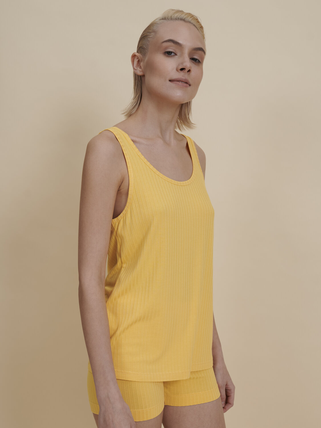 Выбирайте нужный размер по таблице размеров на фото. Цвет товара на экране вашего устройства может отличаться от цвета изделия вживую. Домашний комплект женский с шортами и майкой из актуальной ткани в рубчик. Костюм домашний женский с майкой без рукавов – это удобная повседневная одежда для дома. Домашняя одежда всегда должна быть изысканной, создавать чувство уверенности и красоты. Шорты короткие, облегающие, мягкие и уютные, красиво подчеркивают фигуру. Шортики женские на комфортной резинке – она не давит и не перекручивается. Майка базовая – основа женского гардероба. Майка на широких бретелях с глубокими проймами приятно ощущается на теле и дарит комфорт. В составе ткани преобладает высококачественная вискоза – комплект мягкий и воздухопроницаемый. Эластан помогает изделию надолго сохранить первоначальную форму. Комплект женский домашний лаконичного дизайна, без принта, неприхотлив в уходе. В линейке представлены следующие размеры: XS (42), S (44), M (46), L (48). Женский пижамный костюм подходит как женщинам, так и девушкам, девочкам-подросткам. Модель представлена в актуальных цветах: голубом, сером, синем, жёлтом, а также в классическом чёрном. Домашний женский комплект идеален для комфортного сна, пижамной вечеринки. Удобная майка в бельевом стиле подходит для повседневного летнего гардероба, прогулок, отдыха. А также пижама хлопковая женская удобна для беременных и кормящих. Женский комплект из майки и шорт – чудесный подарок для мамы, сестры или подруги на любой праздник.