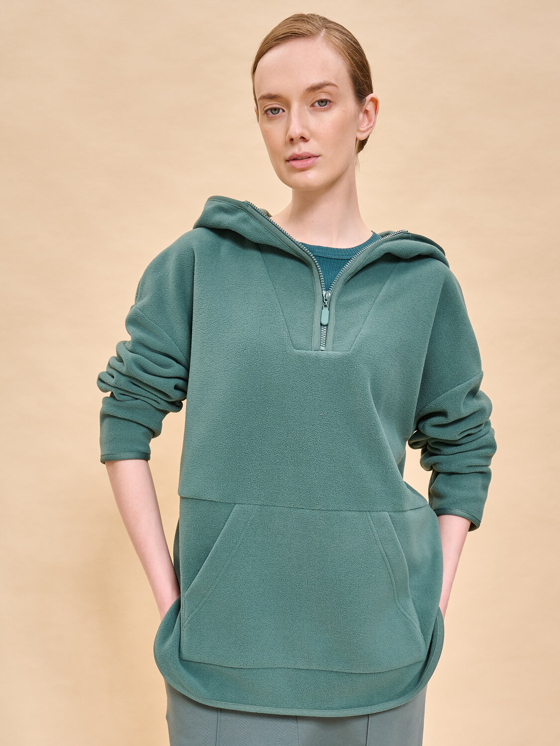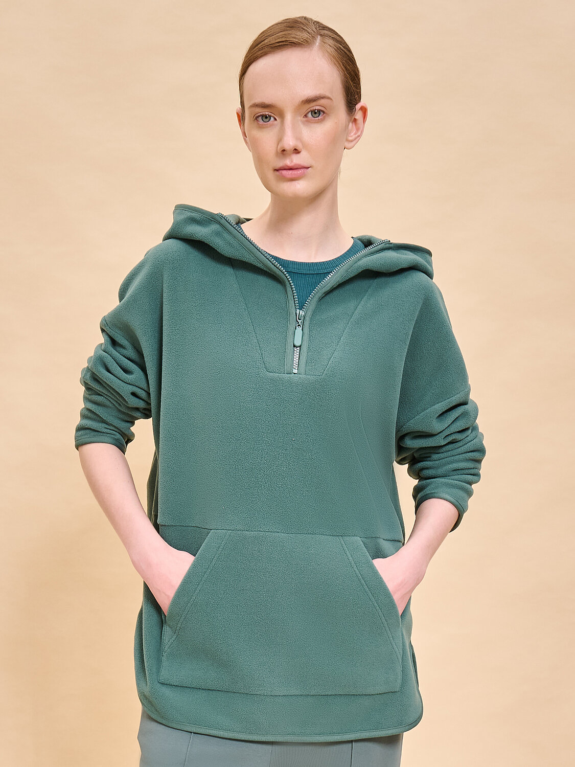Женское худи оверсайз с капюшоном. Модная толстовка однотонная женская свободного силуэта стала обязательной частью современного женского гардероба. Это удобная базовая одежда для девушек и женщин из качественного полотна согреет в любую погоду и подарит комфорт в движениях. Толстовка оверсайз подойдет для любой фигуры. В составе ткани 100% полиэстер — модель лёгкая, просто стирается и быстро сохнет, надолго сохраняет цвет и форму. Худи женское с капюшоном на замке можно надевать как самостоятельный элемент, также с ней хорошо сочетаются верхняя и спортивная одежда. Толстовка женская на молнии с капюшоном с длинным широким рукавом, увеличенной проймой дополнена накладным карманом кенгуру, декоративными круглыми разрезиками — будет стильно смотреться для повседневной носки, для занятий спортом или просто для прогулок и холодных вечеров дома. Худи теплое подарит уют и окутает теплом, это настоящий подарок для осени и зимы. В размерной сетке есть женские толстовки больших размеров. Помните о правильном уходе за изделием: рекомендуется стирать при температуре не выше 30 °C, без предварительного замачивания, с изнанки. Это поможет сохранить качество и цвет худи на длительное время. Не забывайте о выборе правильного размера. Используйте таблицу размеров на фотографии, чтобы выбрать подходящий для себя вариант. Обратите внимание, что цвет товара на экране вашего устройства может отличаться от реального.