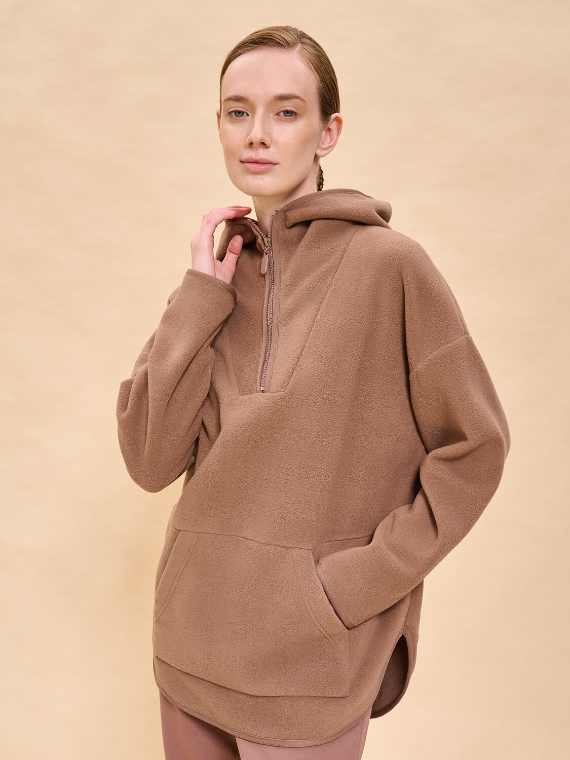 Женское худи оверсайз с капюшоном. Модная толстовка однотонная женская свободного силуэта стала обязательной частью современного женского гардероба. Это удобная базовая одежда для девушек и женщин из качественного полотна согреет в любую погоду и подарит комфорт в движениях. Толстовка оверсайз подойдет для любой фигуры. В составе ткани 100% полиэстер — модель лёгкая, просто стирается и быстро сохнет, надолго сохраняет цвет и форму. Худи женское с капюшоном на замке можно надевать как самостоятельный элемент, также с ней хорошо сочетаются верхняя и спортивная одежда. Толстовка женская на молнии с капюшоном с длинным широким рукавом, увеличенной проймой дополнена накладным карманом кенгуру, декоративными круглыми разрезиками — будет стильно смотреться для повседневной носки, для занятий спортом или просто для прогулок и холодных вечеров дома. Худи теплое подарит уют и окутает теплом, это настоящий подарок для осени и зимы. В размерной сетке есть женские толстовки больших размеров. Помните о правильном уходе за изделием: рекомендуется стирать при температуре не выше 30 °C, без предварительного замачивания, с изнанки. Это поможет сохранить качество и цвет худи на длительное время. Не забывайте о выборе правильного размера. Используйте таблицу размеров на фотографии, чтобы выбрать подходящий для себя вариант. Обратите внимание, что цвет товара на экране вашего устройства может отличаться от реального.