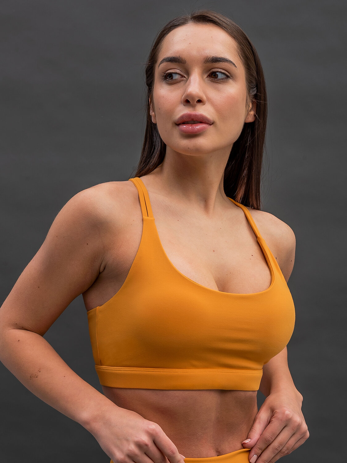 Спортивный женский топ-бра из эластичной ткани. Короткий топ с открытой спиной на тонких четырех бретелях, красиво перекрещивающихся на спине. Трендовые цвета и уникальные плоские швы. Женский спортивный кроп топ для фитнеса и йоги сделает тренировки легкими, движения свободными, а занятия спортом в радость. Уникальные плоские швы не впиваются в кожу, не натирают при движениях, создавая приятное соприкосновение с телом. Долгие занятия йогой или активные занятия на тренажерах больше не принесут дискомфорта. Удобный укороченный топ для женщин подходит для тренировок и для занятий в тренажерном зале, пилатеса, для бега, для йоги и фитнеса, занятий танцами и прогулок. Комфортная посадка топика красиво сядет по фигуре, подчеркнув природные линии тела. Топ с чашками надежно поддержит грудь даже при активных движениях. Топ без косточек. Плотная резинка под грудью по краю спортивного топа надежно зафиксирует изделие на теле. Топ с вырезом на спине, дополнительное отверстие элегантной формы способствует воздухопроницаемости и дополнительному охлаждающему эффекту. Стильный и современный топ для девушек прочно вошел в современные образы, стирая грань повседневной и спортивной одежды. Модный топик - это не просто одежда для фитнеса, это базовая вещь в женском гардеробе. Можно надевать топ с чашками под пиджак, под рубашку, в качестве первого слоя под одежду. Бюстье сочетается с джинсами, спортивными леггинсами, велосипедками. Такая укороченная майка подойдет как белье под объемный свитер с открытым плечом.