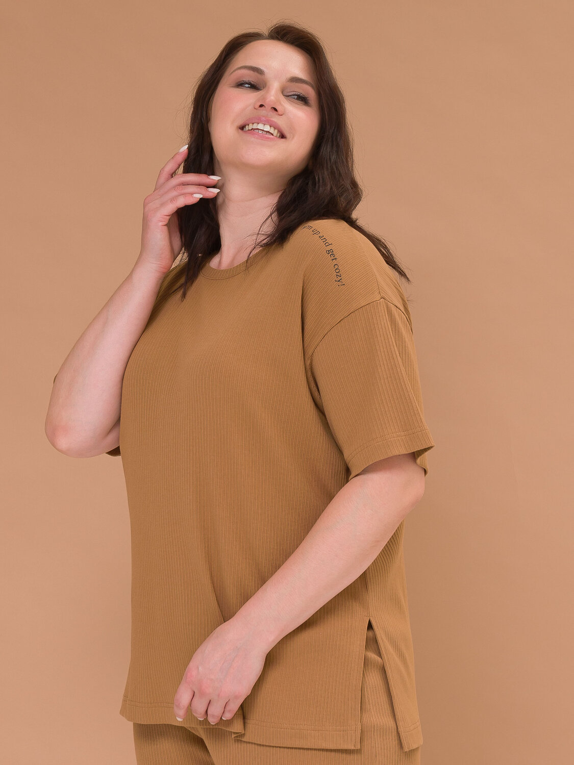 Классическая женская футболка оверсайз, однотонная с принтом надписью. С круглым вырезом из невероятно мягкой ткани в широкий рубчик. Удлинённая с разрезиками внизу, можно модно заправить только спереди или носить на выпуск. Стильная футболка женская с коротким спущенным рукавом это базовая одежда женского гардероба без которой не обходится ни одна современная модница. Универсальная модель, свободная футболка, сочетается совершенно с любыми вещами. Комфортная плотная хлопковая ткань подарит приятные ощущения для кожи, подходит для повседневной носки на каждый день, как домашняя одежда и пижама для сна. А еще это идеальная спортивная майка для бега, йоги, фитнесса. Свободный крой не сковывает, в ней любое движение будет в радость. Подарок для девушки - это футболки женские больших размеров представленные в размерном ряде.