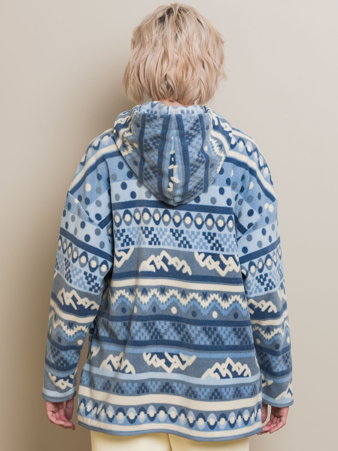 Худи женское – практичная, модная и теплая одежда из новой коллекции бренда Pelican. Толстовка с капюшоном, кулиской и молнией по горловине до середины груди универсальна. Ее можно надеть под верхнюю одежду, она не будет стеснять движений, можно комбинировать с другими моделями из зимней коллекции. У данной модели худи с капюшоном шнурки имеют карабины для фиксации нужной длины. Толстовка женская на молнии с капюшоном не требует особого ухода. Материал изделия (флис) после стирки не растягивается, не линяет. Быстро сохнет, что очень удобно в поездках за город на каникулы с детьми и семьей. На рукавах и по низу худи – оригинальный кант из ткани в тон основного материала. Эта кофта с замком по горловине точно станет любимой вещью вашего гардероба. Толстовка женская будет защищать от ветра и непогоды и отлично сочетается с брюками, треггинсами из теплой ткани, курткой или пальто. Новые модели выполнены в приятной палитре. Эта толстовка в оттенках голубого цвета с орнаментом по мотивам гор. Флисовая толстовка женская точно понравится любой девушке, девочке-подростку и женщине. Худи оверсайз не сковывает движений при занятиях зимним спортом. Такую вещь также можно подарить на Новый год или Рождество в качестве заботливого подарка, устроить фотосессию в стиле сканди. Только представьте, как уютно можно укутаться в теплый и мягкий флис зимним вечером или утеплиться на снежную прогулку с семьей.