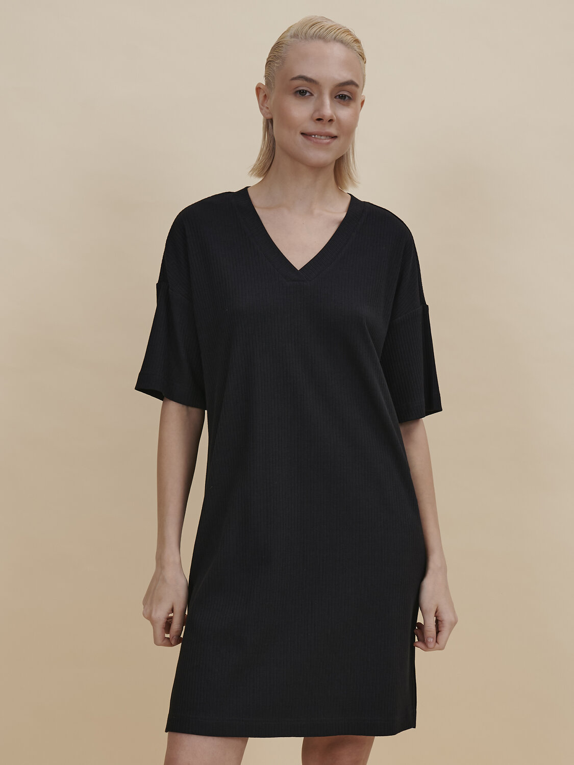 Стильное женское летнее платье длиной до колена из модной ткани в рубчик. Свободное платье оверсайз прямого кроя с коротким рукавом и V-образным вырезом горловины подходит для любого типа фигуры. Комфортное повседневное платье-футболка из кашкорсе – базовый элемент женского гардероба. В составе ткани изделия преобладают высококачественные хлопок и вискоза – платье мягкое и отлично пропускает воздух, давая коже дышать. Платье однотонное, без принта, за ним просто ухаживать. В линейке представлены следующие размеры: XS (42), S (44), M (46), L (48), XL (50). Просторное платье в спортивном стиле подходит как женщинам, так и девушкам, девочкам-подросткам. Модель представлена в следующих цветах: чёрный, голубой, синий, жёлтый. Свободное платье идеально для носки дома, комфортного сна, пижамной вечеринки. Платье майка подходит для повседневного летнего гардероба, прогулок, отдыха, пляжа. А также модель удобна для беременных. Женское трикотажное платье – чудесный подарок для мамы, сестры или подруги на любой праздник. Выбирайте нужный размер по таблице размеров на фото. Цвет товара на экране вашего устройства может отличаться от цвета изделия вживую.