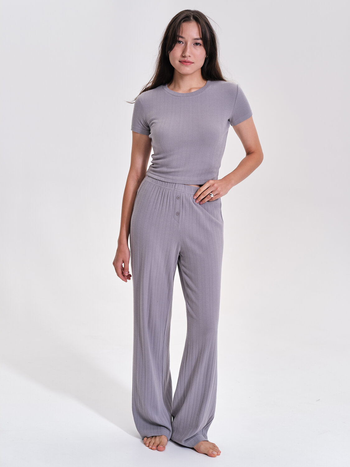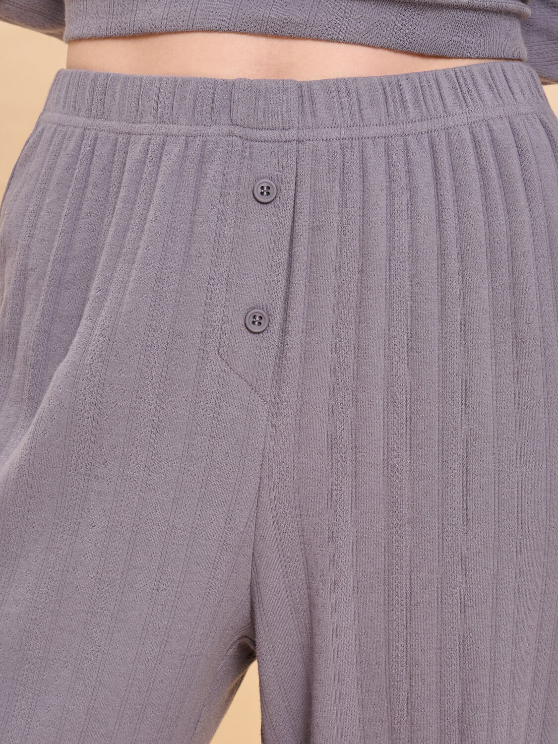 Брюки домашние с высокой посадкой изготовлены из мягкого 100% хлопка «пуантель» с мельчайшим геометрическим узором, напоминающим кружево. Силуэт модели прямой, без боковых швов. Мягкий пояс на резинке обеспечивает удобную посадку изделия. Брюки легкие женские дополнены оригинальной деталью — декоративным гульфиком с пуговицами. Женские брюки на резинке выполнены в универсальных оттенках, легко сочетаются с любыми майками, футболками, джемперами. Широкие брюки прекрасно подойдут для уютных домашних образов. Помните о правильном уходе за изделием: ажурные брюки рекомендуется стирать при температуре не выше 30 °C, без предварительного замачивания, с изнанки. Это поможет сохранить качество и цвет брюк на длительное время. Не забывайте о выборе правильного размера. Используйте таблицу размеров на фотографии, чтобы выбрать подходящий для себя вариант. Обратите внимание, что цвет товара на экране вашего устройства может отличаться от реального.