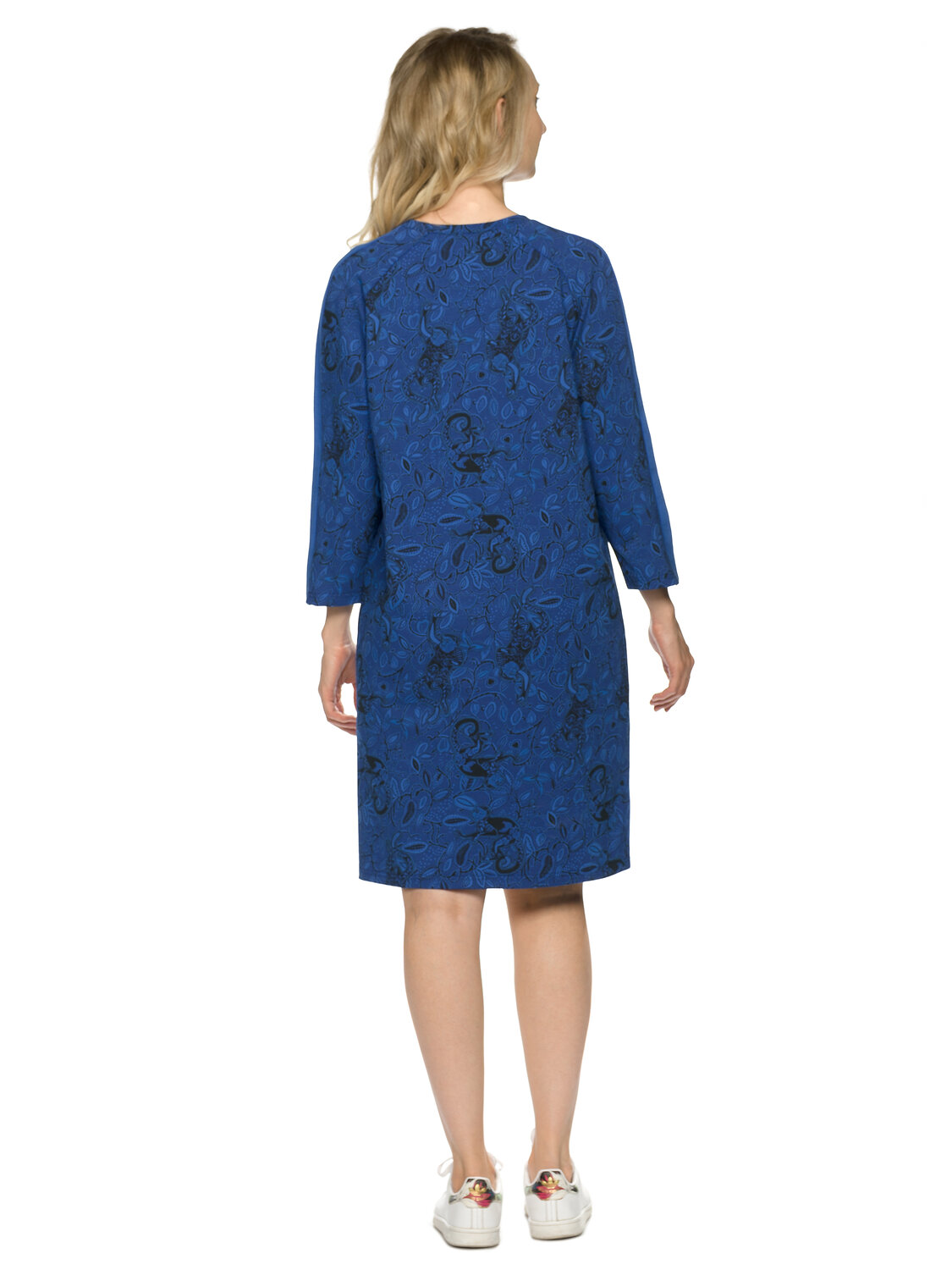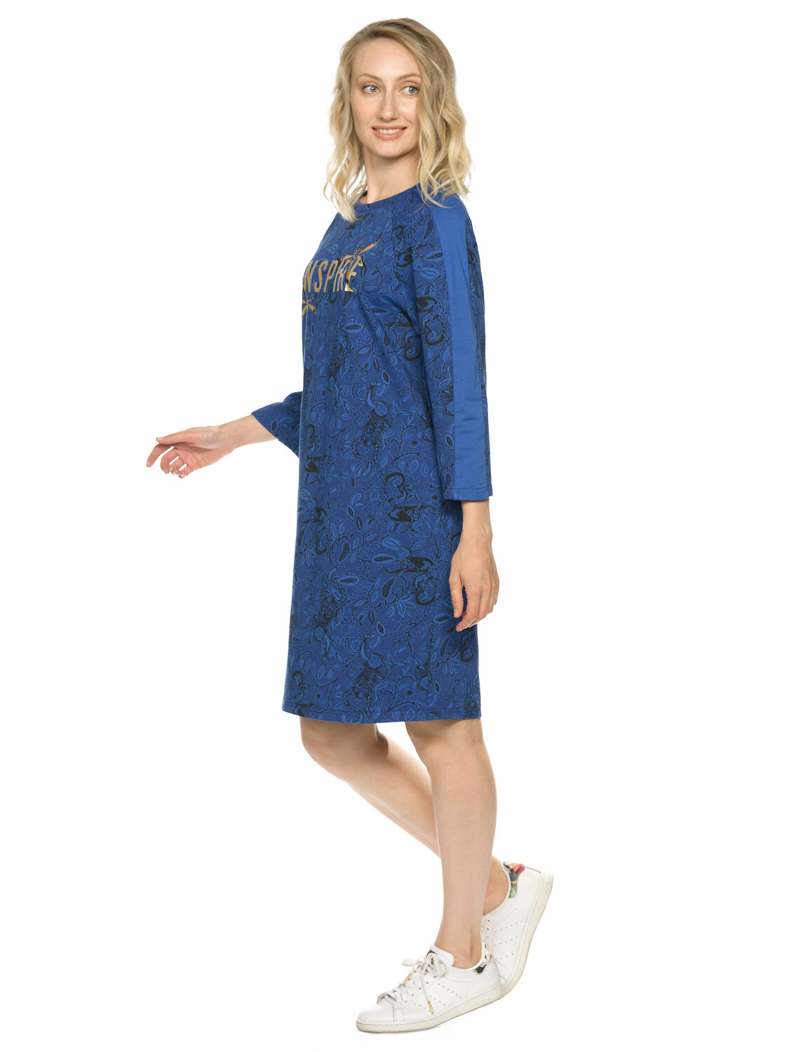 Новинка! Платье женское в меру свободного прямого силуэта из мягкого принтованного футера. Рукав реглан с однотонной вставкой по верхнему плечевому срезу. Разноцветный металлизированный принт. Перевод: Вдохновение.