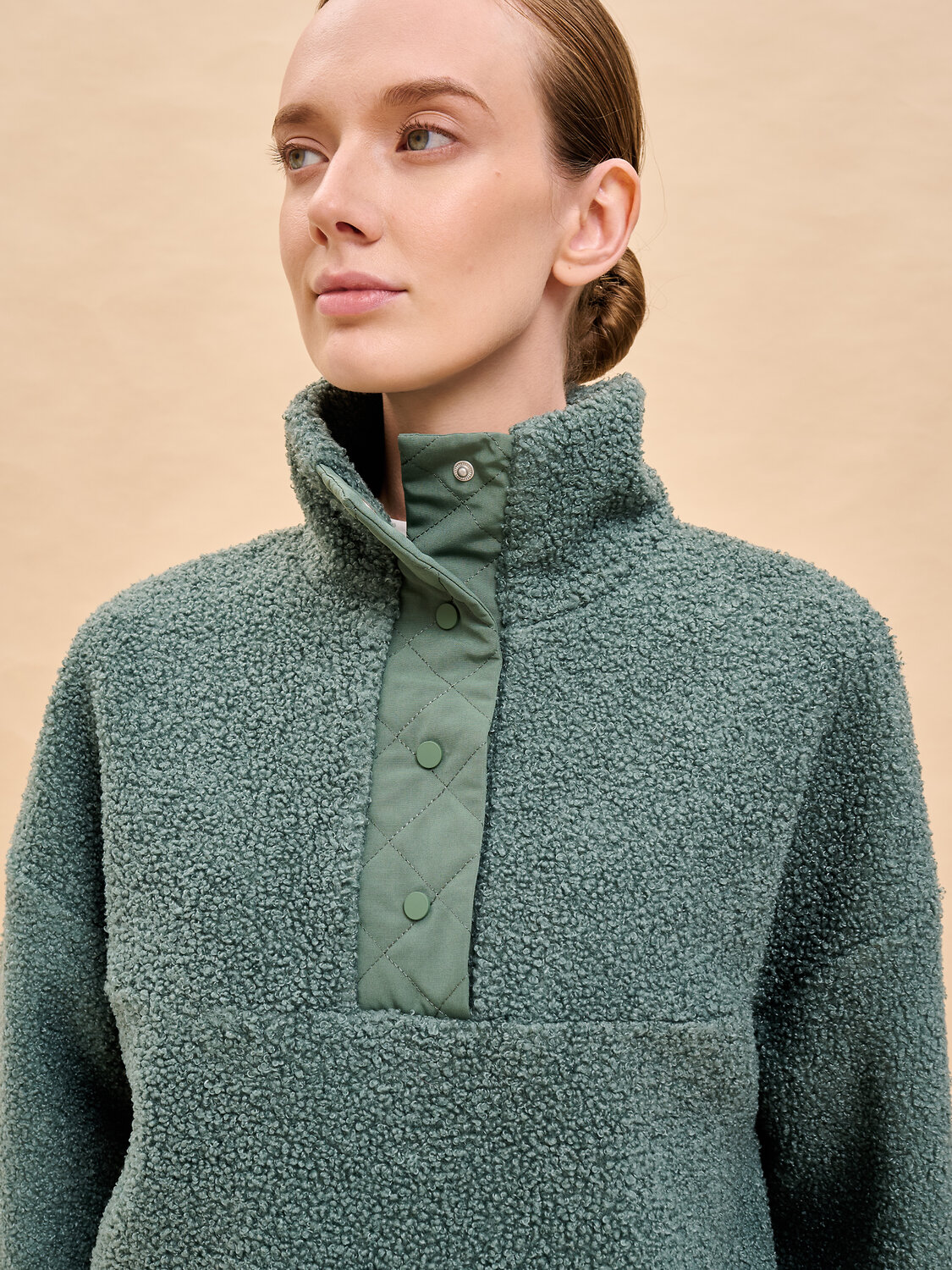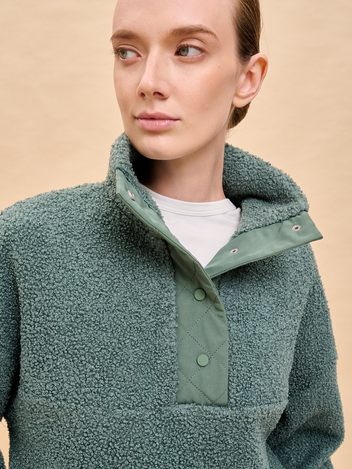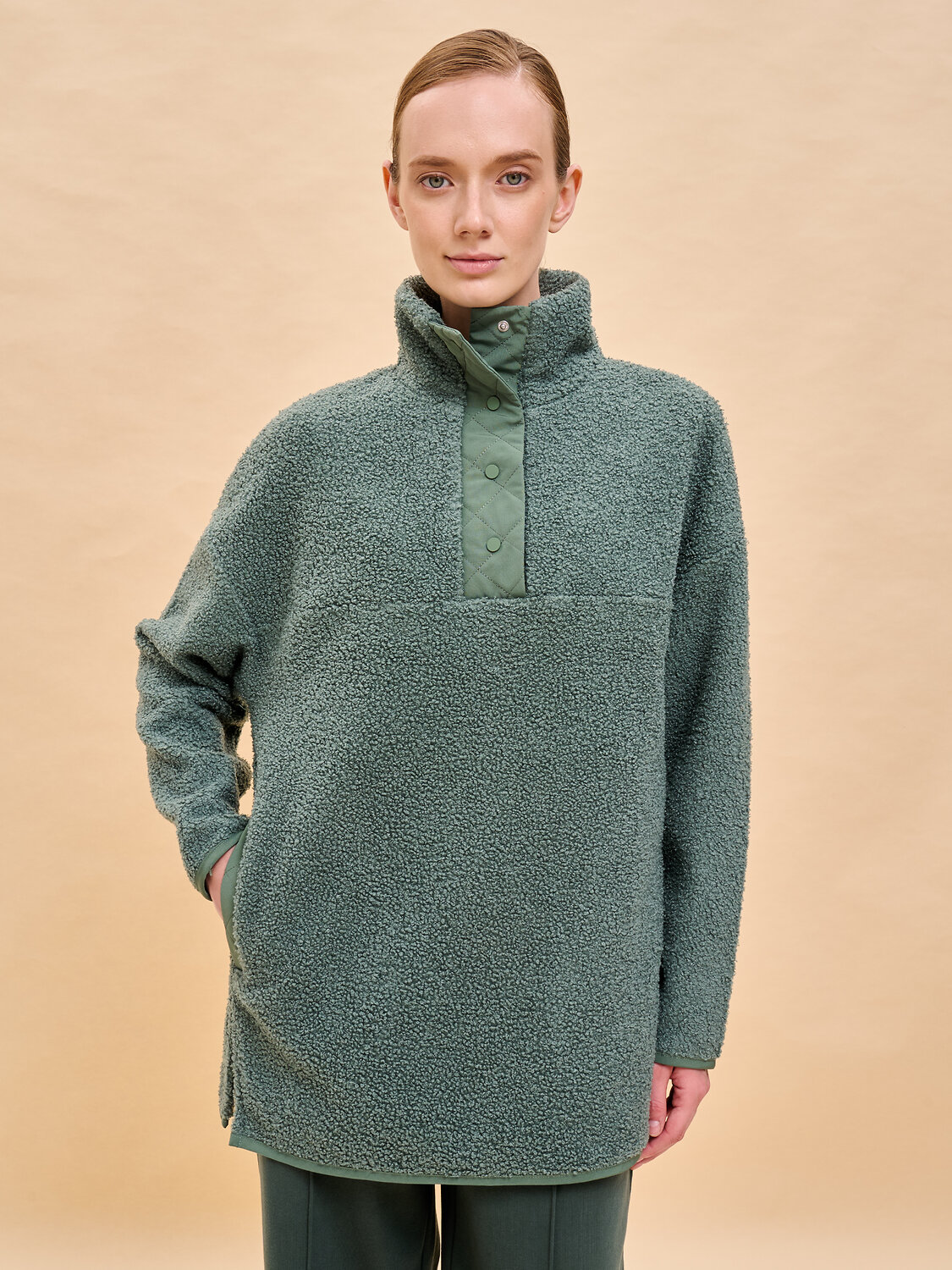 Женская толстовка-анорак из модного бербер-флиса (фактура «барашка»). Куртка свободного силуэта со спущенным плечом застёгивается на кнопки — легко застёгивать и расстёгивать. Декоративная отделка из гладкого «курточного» материала — один из актуальных трендов. В боковых швах удобные карманы. Толстовка без капюшона. Объёмный воротник можно носить двумя способами. Как воротник-стойку — защитит от холода и ветра. И как отложной воротник в более тёплую погоду. Пушистая толстовка лаконичного дизайна, без принта. Она проста в уходе: изделия из флиса прочные, легко стираются, не линяют, быстро сохнут и устойчивы к образованию катышков. Анорак из качественного флиса очень лёгкий, тёплый и прекрасно пропускает воздух. Куртка представлена в двух уютных цветах: оранжевом и молочном. Размерная линейка: XS (42): S (44): M (46): L (48): XL (50). Плюшевая толстовка подходит женщинам, девушкам, девочкам-подросткам. Идеальна как для высоких женщин, так и для девушек среднего роста. Анорак можно носить как куртку ранней осенью или поздней весной. Толстовка с воротником тёплая и мягкая. Объём позволяет надеть под низ футболку или водолазку. Флисовая толстовка — отличный выбор для прогулок и активного отдыха. Для круглогодичного применения: прохладным летом, осенью, зимой, весной и демисезон. Она станет стильным и практичным подарком подруге, дочери или сестре на Новый год или любой другой праздник.