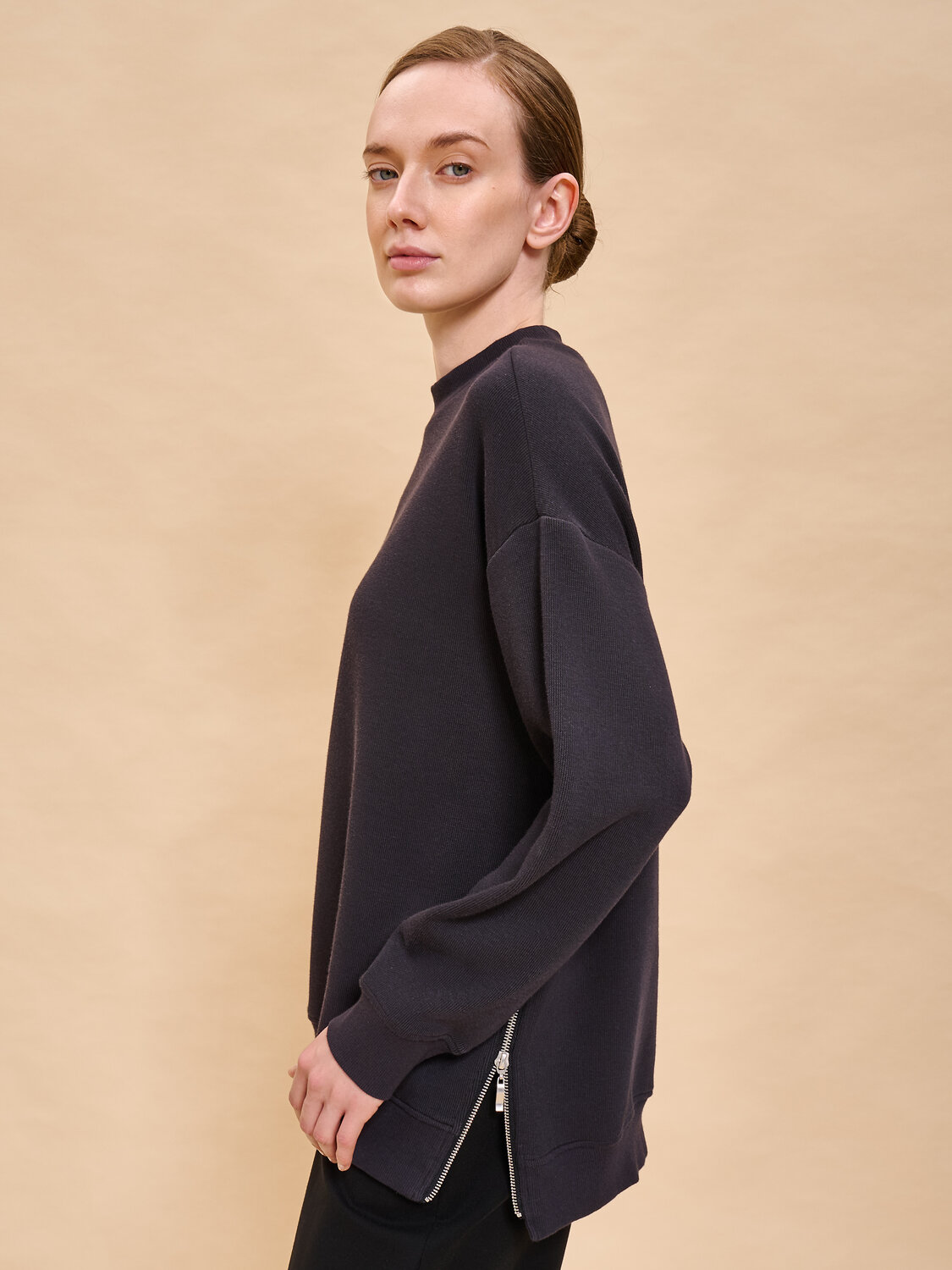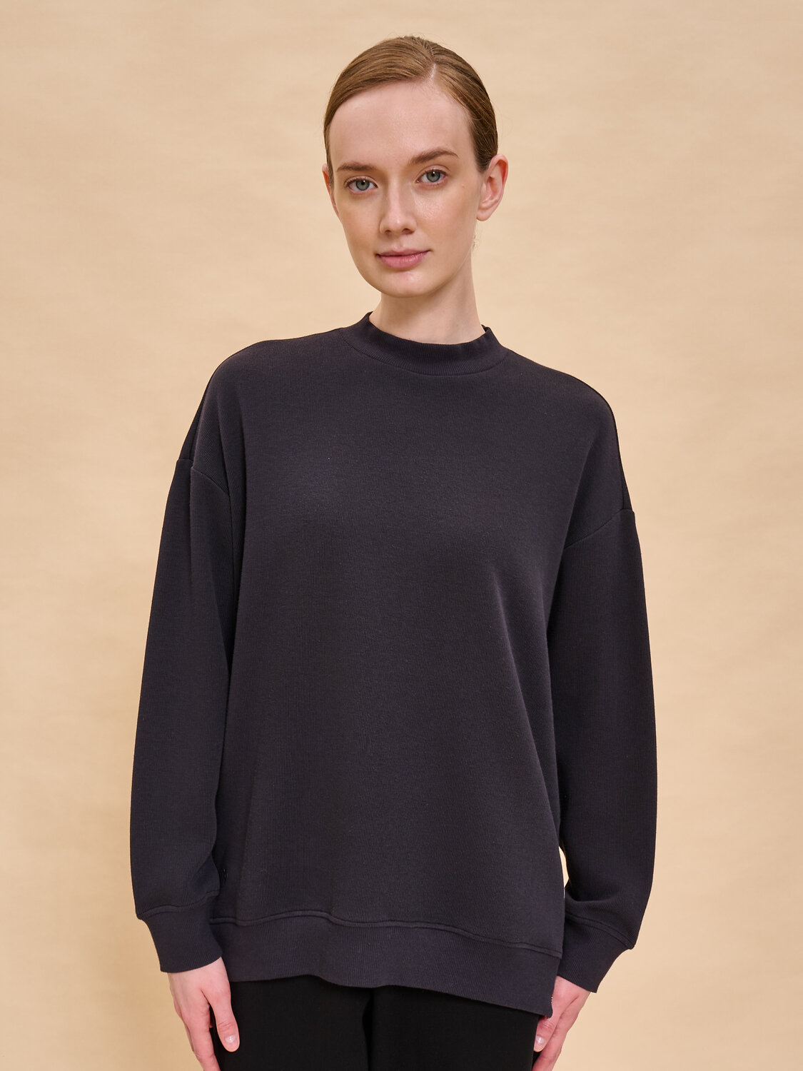 Свитшот женский без начеса. Толстовка расслабленного силуэта-кокон со спущенным плечом подарит вам комфорт и станет стильным дополнением гардероба. Спинка джемпера длиннее переда — актуальный модный тренд. Манжеты, отделка горловины и низа изделия выполнены из эластичной широкой рибаны (ткани в рубчик). Она не растягивается, отлично сохраняет форму, при этом свитшот удобно надевать и снимать. Модель неприхотлива в уходе. Оверсайз свитшот выполнен из ткани «французский рубчик» — в составе ткани преобладает высококачественный хлопок, ткань дышит и приятна на ощупь. Полиэстер помогает сохранить цвет и первозданный внешний вид надолго. «Французский рубчик» придаёт модели актуальный объём. Женский свитшот выполнен в в универсальных цветах, который легко сочетать с любыми брюками, джинсами, юбками, платьями — можно создать много красивых образов. Толстовка декорирована небольшим объёмным принтом в виде первой буквы логотипа бренда. Стильная фишка модели — в боковых швах разрезы на металлических молниях. Однотонный оверсайз-свитшот — базовый элемент повседневного женского гардероба. Свитшот без начеса можно носить круглый год. Помните о правильном уходе за изделием: рекомендуется стирать при температуре не выше 30 °C, без предварительного замачивания, с изнанки. Это поможет сохранить качество и цвет свитшота на длительное время. Не забывайте о выборе правильного размера. Используйте таблицу размеров на фотографии, чтобы выбрать подходящий для себя вариант. Обратите внимание, что цвет товара на экране вашего устройства может отличаться от реального.