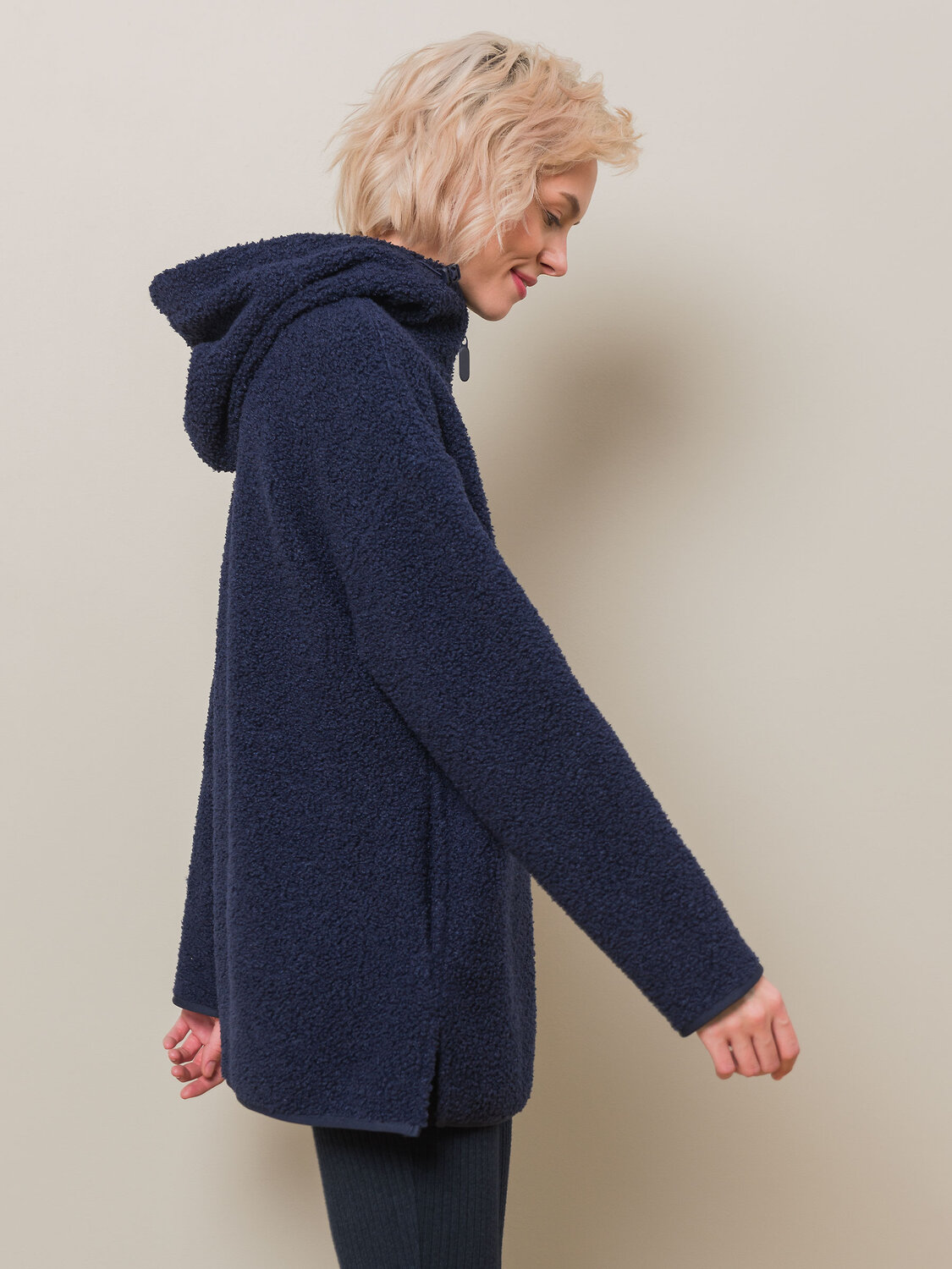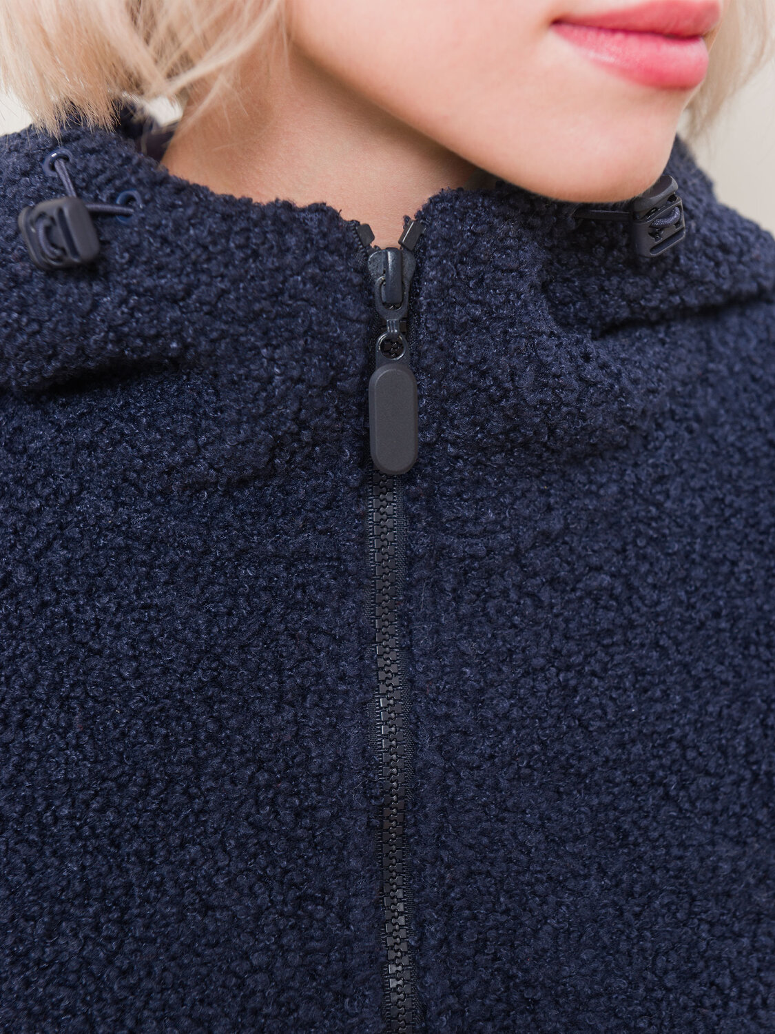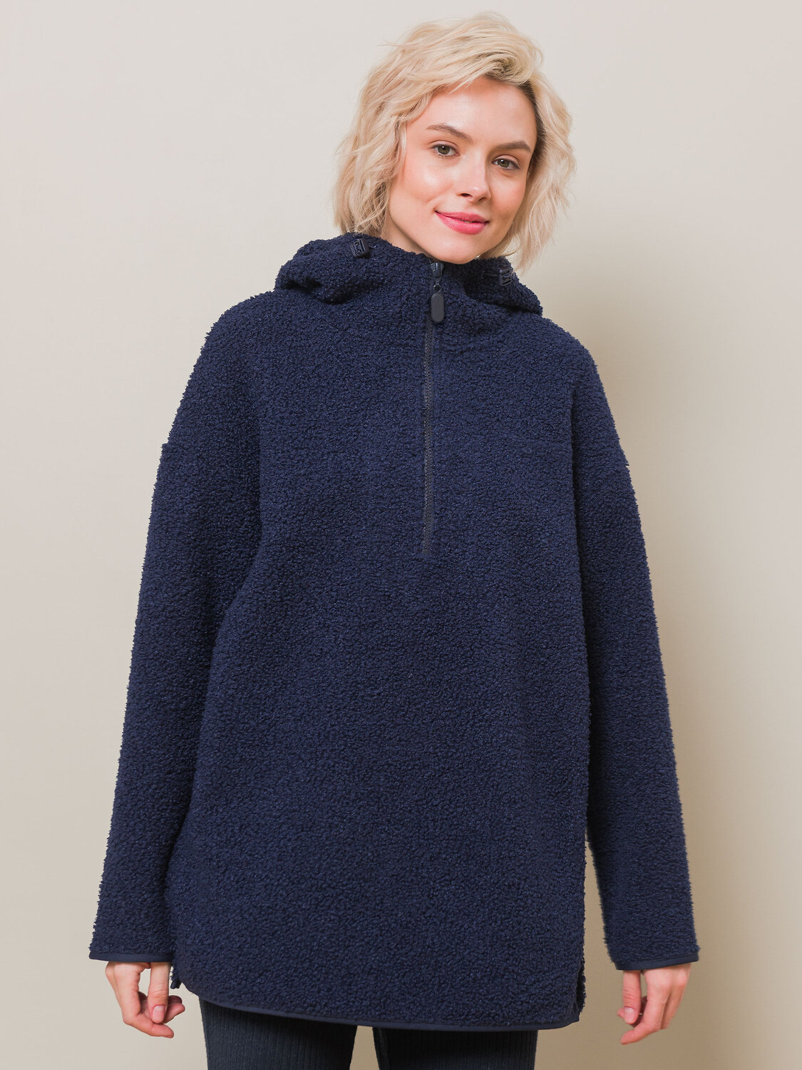 Худи женское – удобная и практичная одежда из новой коллекции бренда Pelican. Пушистая толстовка с капюшоном, кулиской и молнией по горловине до середины груди универсальна. Ее можно надеть под верхнюю одежду, она не будет стеснять движений. Легко комбинировать с другими моделями из зимней коллекции. Шнурки с карабинами - для фиксации нужной длины. Изделие без карманов. Худи с капюшоном отлично будет сочетаться как с футболкой, так и джемпером с воротником-стойкой из коллекции. Толстовка женская на молнии с капюшоном не требует особого ухода. Материал изделия (бербер-флис) после стирки не растягивается, не линяет. Быстро сохнет, что очень удобно в поездках за город на каникулы с детьми и семьей. На рукавах и по низу худи – оригинальный кант из ткани в тон основного материала. Эта кофта с замком по горловине точно станет любимой вещью вашего гардероба. Толстовка женская будет защищать от ветра и непогоды и отлично сочетается с брюками, треггинсами из теплой ткани, курткой или пальто. Новые модели выполнены в приятной палитре - сине-серого цвета (полуночный синий) и молочного. Модная флисовая кофта женская точно понравится любой девушке, девочке-подростку и женщине. Худи оверсайз не сковывает движений при занятиях зимним спортом. Такую вещь также можно подарить на Новый год или Рождество в качестве заботливого подарка, устроить фотосессию в стиле сканди. Только представьте, как уютно можно укутаться в теплый и мягкий флис зимним вечером или утеплиться на снежную прогулку с семьей.