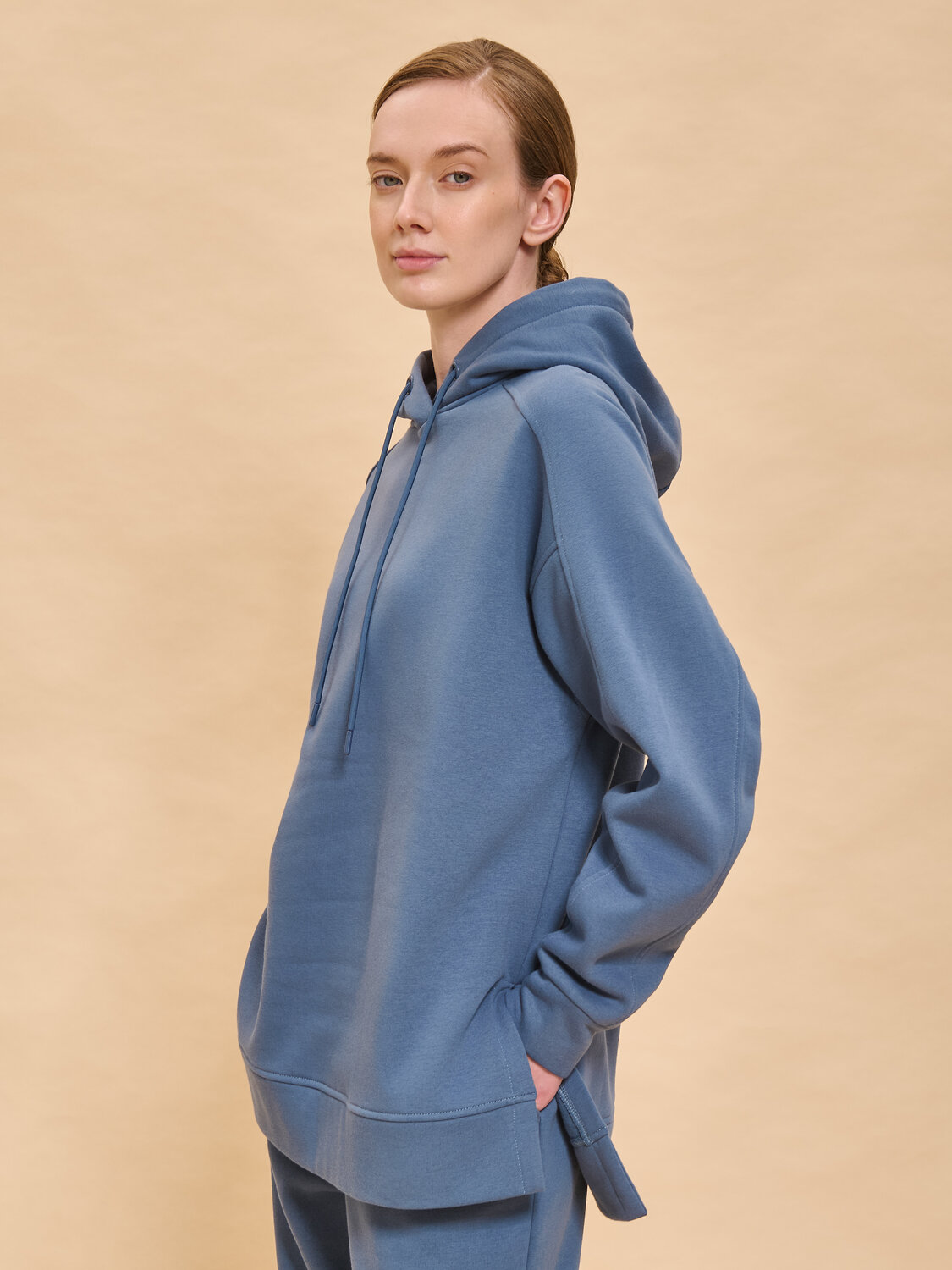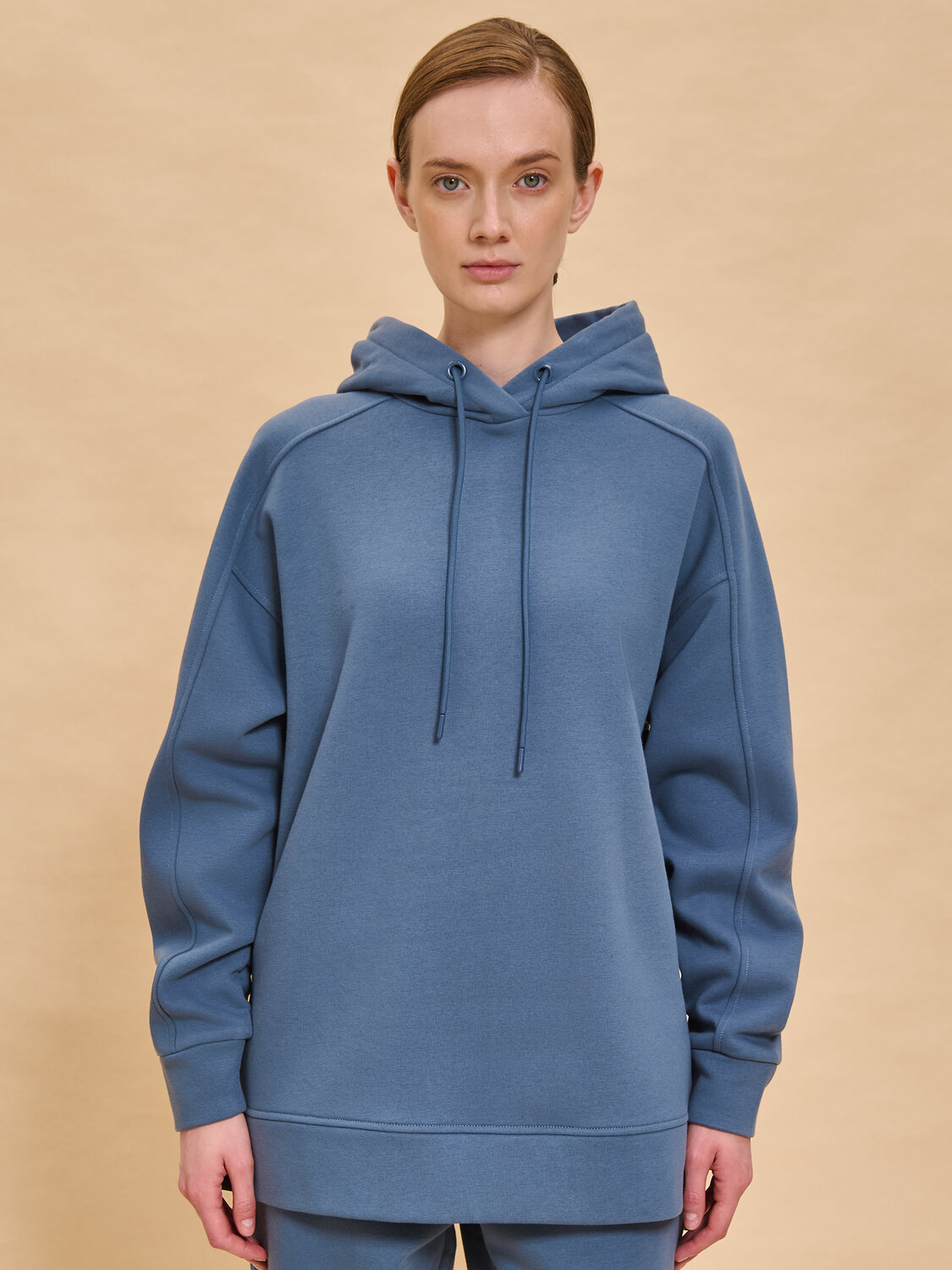 Худи женское с капюшоном. Комфортная толстовка свободного прямого силуэта подарит вам комфорт и станет стильным и уютным дополнением гардероба. Спинка худи длиннее переда, разрезы в боковых швах — актуальные тренды сезона. Манжеты и отделка низа из основной ткани. Интересная деталь — необычный, комбинированный крой рукавов. Капюшон с подкладкой из кулирной глади — смотрится аккуратно и хорошо держит форму. На капюшоне есть кулиска с крупными люверсами и шнурком из основной ткани — можно регулировать объём. Модель неприхотлива в уходе. Худи с капюшоном выполнено из мягкого футера с начёсом — в составе ткани преобладает высококачественный хлопок, ткань дышит. Полиэстер помогает сохранить цвет и первозданный внешний вид надолго. Женское худи выполнено в в универсальных цветах, которые легко сочетать с любыми брюками, джинсами — можно создать много стильных образов. Толстовка лаконичного дизайна, без принтов. Однотонное оверсайз худи — базовый элемент повседневного женского гардероба. Худи с начесом можно носить круглый год. Помните о правильном уходе за изделием: рекомендуется стирать при температуре не выше 30 °C, без предварительного замачивания, с изнанки. Это поможет сохранить качество и цвет худи на длительное время. Не забывайте о выборе правильного размера. Используйте таблицу размеров на фотографии, чтобы выбрать подходящий для себя вариант. Обратите внимание, что цвет товара на экране вашего устройства может отличаться от реального.
