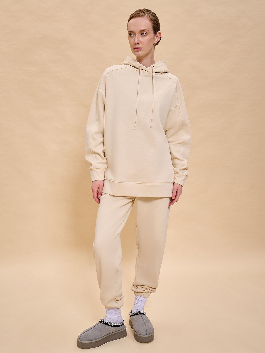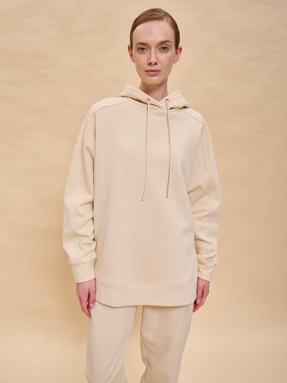 Худи женское с капюшоном. Комфортная толстовка свободного прямого силуэта подарит вам комфорт и станет стильным и уютным дополнением гардероба. Спинка худи длиннее переда, разрезы в боковых швах — актуальные тренды сезона. Манжеты и отделка низа из основной ткани. Интересная деталь — необычный, комбинированный крой рукавов. Капюшон с подкладкой из кулирной глади — смотрится аккуратно и хорошо держит форму. На капюшоне есть кулиска с крупными люверсами и шнурком из основной ткани — можно регулировать объём. Модель неприхотлива в уходе. Худи с капюшоном выполнено из мягкого футера с начёсом — в составе ткани преобладает высококачественный хлопок, ткань дышит. Полиэстер помогает сохранить цвет и первозданный внешний вид надолго. Женское худи выполнено в в универсальных цветах, которые легко сочетать с любыми брюками, джинсами — можно создать много стильных образов. Толстовка лаконичного дизайна, без принтов. Однотонное оверсайз худи — базовый элемент повседневного женского гардероба. Худи с начесом можно носить круглый год. Помните о правильном уходе за изделием: рекомендуется стирать при температуре не выше 30 °C, без предварительного замачивания, с изнанки. Это поможет сохранить качество и цвет худи на длительное время. Не забывайте о выборе правильного размера. Используйте таблицу размеров на фотографии, чтобы выбрать подходящий для себя вариант. Обратите внимание, что цвет товара на экране вашего устройства может отличаться от реального.
