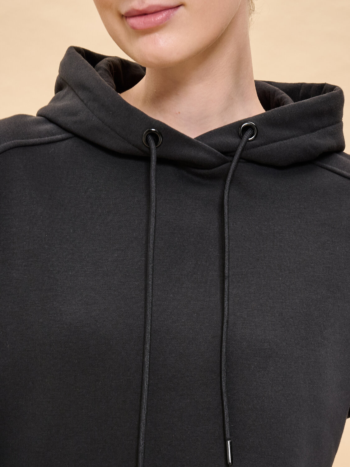 Худи женское с капюшоном. Комфортная толстовка свободного прямого силуэта подарит вам комфорт и станет стильным и уютным дополнением гардероба. Спинка худи длиннее переда, разрезы в боковых швах — актуальные тренды сезона. Манжеты и отделка низа из основной ткани. Интересная деталь — необычный, комбинированный крой рукавов. Капюшон с подкладкой из кулирной глади — смотрится аккуратно и хорошо держит форму. На капюшоне есть кулиска с крупными люверсами и шнурком из основной ткани — можно регулировать объём. Модель неприхотлива в уходе. Худи с капюшоном выполнено из мягкого футера с начёсом — в составе ткани преобладает высококачественный хлопок, ткань дышит. Полиэстер помогает сохранить цвет и первозданный внешний вид надолго. Женское худи выполнено в в универсальных цветах, которые легко сочетать с любыми брюками, джинсами — можно создать много стильных образов. Толстовка лаконичного дизайна, без принтов. Однотонное оверсайз худи — базовый элемент повседневного женского гардероба. Худи с начесом можно носить круглый год. Помните о правильном уходе за изделием: рекомендуется стирать при температуре не выше 30 °C, без предварительного замачивания, с изнанки. Это поможет сохранить качество и цвет худи на длительное время. Не забывайте о выборе правильного размера. Используйте таблицу размеров на фотографии, чтобы выбрать подходящий для себя вариант. Обратите внимание, что цвет товара на экране вашего устройства может отличаться от реального.