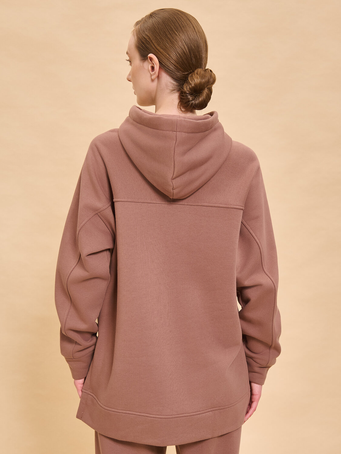 Худи женское с капюшоном. Комфортная толстовка свободного прямого силуэта подарит вам комфорт и станет стильным и уютным дополнением гардероба. Спинка худи длиннее переда, разрезы в боковых швах — актуальные тренды сезона. Манжеты и отделка низа из основной ткани. Интересная деталь — необычный, комбинированный крой рукавов. Капюшон с подкладкой из кулирной глади — смотрится аккуратно и хорошо держит форму. На капюшоне есть кулиска с крупными люверсами и шнурком из основной ткани — можно регулировать объём. Модель неприхотлива в уходе. Худи с капюшоном выполнено из мягкого футера с начёсом — в составе ткани преобладает высококачественный хлопок, ткань дышит. Полиэстер помогает сохранить цвет и первозданный внешний вид надолго. Женское худи выполнено в в универсальных цветах, которые легко сочетать с любыми брюками, джинсами — можно создать много стильных образов. Толстовка лаконичного дизайна, без принтов. Однотонное оверсайз худи — базовый элемент повседневного женского гардероба. Худи с начесом можно носить круглый год. Помните о правильном уходе за изделием: рекомендуется стирать при температуре не выше 30 °C, без предварительного замачивания, с изнанки. Это поможет сохранить качество и цвет худи на длительное время. Не забывайте о выборе правильного размера. Используйте таблицу размеров на фотографии, чтобы выбрать подходящий для себя вариант. Обратите внимание, что цвет товара на экране вашего устройства может отличаться от реального.