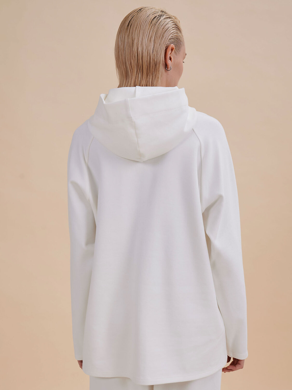 Стильная женская толстовка с капюшоном. Худи модного оверсайз-силуэта с рукавами кроя реглан подарит вам комфорт и свободу движений. Модель слегка расклешена книзу, её украшает оригинальная форма горловины. По переду два удобных накладных кармана — они придают изделию завершённый вид, в них можно положить необходимые мелочи. Женское худи выполнено из гладкой и тактильно приятной ткани, которая при этом держит форму. В составе ткани преобладает высококачественный хлопок — худи приятно на ощупь и великолепно пропускает воздух, давая коже дышать. Благодаря эластану толстовка сохраняет отличную форму в течение продолжительного времени. Толстовка однотонная, без принта, неприхотлива в уходе. Джемпер представлен в нескольких цветах: чёрном, голубом, синем, зелёном, белом. Его просто комбинировать с любыми брюками, леггинсами, джинсами. Размерная линейка: XS (42), S (44), M (46), L (48), XL (50). Худи подходит как женщинам, так и девушкам, девочкам-подросткам. Такой джемпер можно носить на работу, учёбу, на прогулки, на отдыхе и дома. Толстовка с капюшоном оверсайз подходит для круглогодичного применения: летом, осенью, зимой, весной и демисезон. Худи удлиненное — это чудесный подарок маме, подруге или сестре на любой праздник. Выбирайте нужный размер по таблице размеров на фото. Цвет товара на экране вашего устройства может отличаться от цвета изделия вживую.