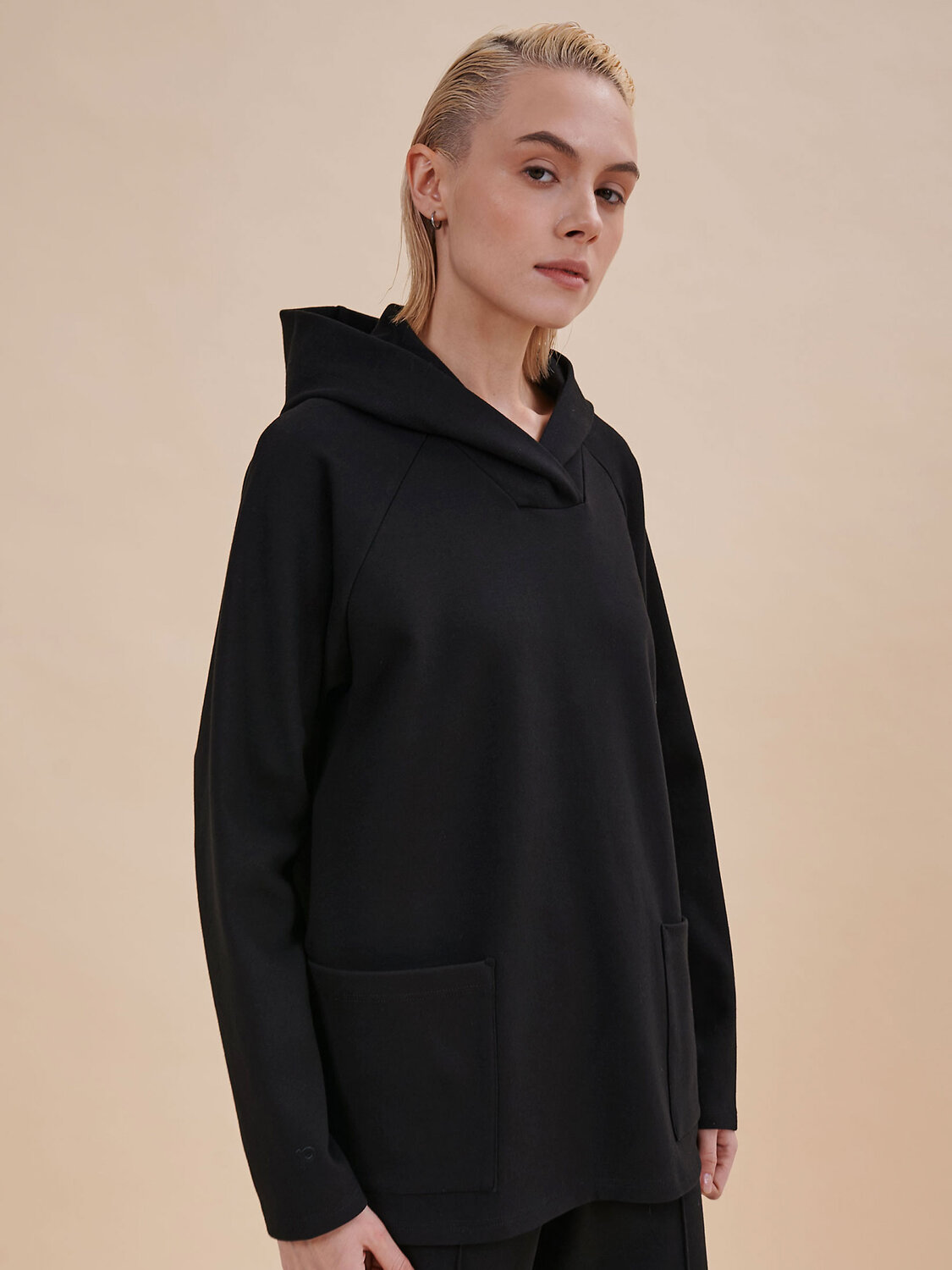 Стильная женская толстовка с капюшоном. Худи модного оверсайз-силуэта с рукавами кроя реглан подарит вам комфорт и свободу движений. Модель слегка расклешена книзу, её украшает оригинальная форма горловины. По переду два удобных накладных кармана — они придают изделию завершённый вид, в них можно положить необходимые мелочи. Женское худи выполнено из гладкой и тактильно приятной ткани, которая при этом держит форму. В составе ткани преобладает высококачественный хлопок — худи приятно на ощупь и великолепно пропускает воздух, давая коже дышать. Благодаря эластану толстовка сохраняет отличную форму в течение продолжительного времени. Толстовка однотонная, без принта, неприхотлива в уходе. Джемпер представлен в нескольких цветах: чёрном, голубом, синем, зелёном, белом. Его просто комбинировать с любыми брюками, леггинсами, джинсами. Размерная линейка: XS (42), S (44), M (46), L (48), XL (50). Худи подходит как женщинам, так и девушкам, девочкам-подросткам. Такой джемпер можно носить на работу, учёбу, на прогулки, на отдыхе и дома. Толстовка с капюшоном оверсайз подходит для круглогодичного применения: летом, осенью, зимой, весной и демисезон. Худи удлиненное — это чудесный подарок маме, подруге или сестре на любой праздник. Выбирайте нужный размер по таблице размеров на фото. Цвет товара на экране вашего устройства может отличаться от цвета изделия вживую.