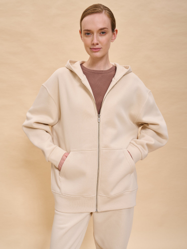 Худи зипка женская. Супертрендовая трикотажная куртка оверсайз из футера с начёсом — отличная альтернатива ветровке в прохладную погоду. Толстовка женская с капюшоном застёгивается на центральную металлическую молнию. В составе ткани преобладает хлопок — зипка мягкая, приятная на ощупь и хорошо пропускает воздух. Полиэстер обеспечивает изделию прочность и долговечность. Капюшон с подкладкой — хорошо держит форму. Манжеты по низу и на рукавах из основной ткани. По переду толстовка женская оверсайз дополнена объёмным накладным карманом-кенгуру. Зипка — базовый элемент для стильного повседневного гардероба. Легко сочетается с джинсами, спортивными брюками и брюками карго. Толстовка с капюшоном лаконичного дизайна, без принтов. Куртка выполнена в универсальных оттенках, которые легко сочетаются с одеждой разных цветов. Стильное и практичное худи женское на молнии неприхотливо в уходе. Помните о правильном уходе за изделием: рекомендуется стирать при температуре не выше 30 °C, без предварительного замачивания, с изнанки. Это поможет сохранить качество и цвет куртки на длительное время. Не забывайте о выборе правильного размера. Используйте таблицу размеров на фотографии, чтобы выбрать подходящий для вас вариант. Обратите внимание, что цвет товара на экране вашего устройства может отличаться от реального.