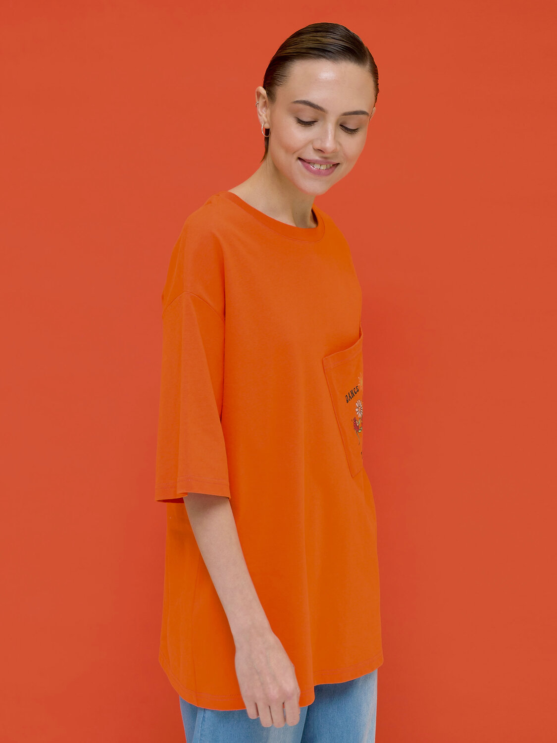 Модная футболка женская оверсайз длинная с принтом от бренда Pelican (Пеликан) трендовая модель весна лето 2023. Стильная футболка прямого кроя, с коротким рукавом и округлым вырезом. Яркая однотонная футболка модных оттенков и эксклюзивный дизайн впишутся в любой женский гардероб. Красивая и крутая базовая вещь, с помощью которой легко создавать стильные образы для девушки. Современная мода стерла границы вечерней и спортивной одежды. Сегодня футболка женская свободного кроя сочетается с высокой шпилькой, кроссовками, подходит для работы в офисе, вечеринок и повседневных прогулок каждый день весной и летом. Длинная огромная футболка с карманом. Футболку oversize можно полностью или частично заправить в джинсы, юбку, носить навыпуск, надевать под пиджак или как молодежный стиль футболка под велосипедки. Летняя футболка подходит как спортивная футболка для спорта, для фитнеса, для йоги, бега, гимнастики, спортзала, для тренировок, занятия танцами. Легкая трикотажная футболка для женщин удобна для активного отдыха, туризма, как пляжная одежда на море и комфортная вещь для отдыха на пляже. Женские футболки на лето из качественного 100% хлопка созданы радовать кожу, пропуская воздух. Дышащая ткань будет комфортной в любую погоду, демисезон, майка оверсайз охладит жарким летом и удержит тепло в прохладу. Хлопковая футболка, одежда свободного кроя дает чувство комфорта и раскованности в движениях. Универсальная модель удлиненной футболки красиво подойдет для любой фигуры, для худых, стройных, пышных и полных, для высоких и невысоких дам, для беременных. Свободная футболка с коротким рукавом станет любимым нарядом для дома. Домашняя футболка классического фасона позволит выглядеть одинаково красиво как дома, так и на улице.