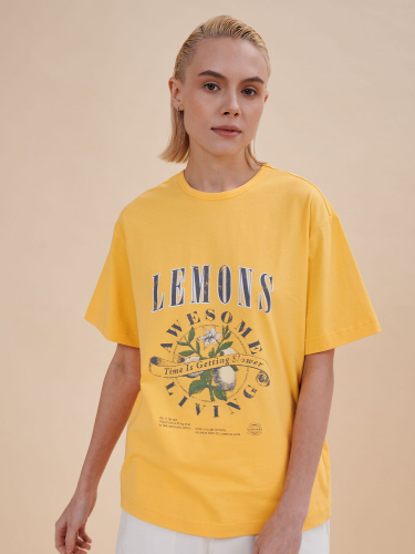 Женская футболка с принтом. Стильная и удобная футболка среднего объема со спущенным плечом подарит вам комфорт и свободу движения. Джемпер такого силуэта скрывает недостатки фигуры и подчёркивает достоинства. Майка с прямыми рукавами идеальна для повседневной носки. Она неприхотлива в уходе. Трикотажная футболка украшена трендовым принтом в духе садоводческих клубов по переду. Надписи переводятся: "лимоны", "потрясающее времяпрепровождение", "время идёт медленнее", "жизнь — слишком серьёзная штука, чтобы говорить о ней всерьёз", "когда вы возьмёте лимоны, выжмите из них творческие соки", "жизнь хороша", "просто добавь воды". Принт качественный и стойкий — без проблем переносит многочисленные стирки. В составе ткани преобладает высококачественный хлопок — футболка мягкая, приятная на ощупь и позволяет коже дышать. Эластан помогает изделию надолго сохранить первозданную форму. Джемпер представлен в следующих актуальных цветах: чёрный, голубой, синий, жёлтый, кремовый, зелёный, белый. Размерная линейка: XS (42): S (44): M (46): L (48): XL (50). Идеально и для женщин, и для девушек, и для девочек-подростков. Базовая футболка среднего объёма универсальна, отлично подходит для работы, учёбы, спорта, прогулок, отдыха, а также для дома и сна. Хлопковая футболка легко сочетается с различными брюками, юбками и шортами. Её можно носить летом, зимой и в демисезон (осенью и весной). Модная футболка — это прекрасный подарок сестре, подруге или маме на любой праздник. Выбирайте нужный размер по таблице размеров на фото. Цвет товара на экране вашего устройства может отличаться от цвета изделия вживую.