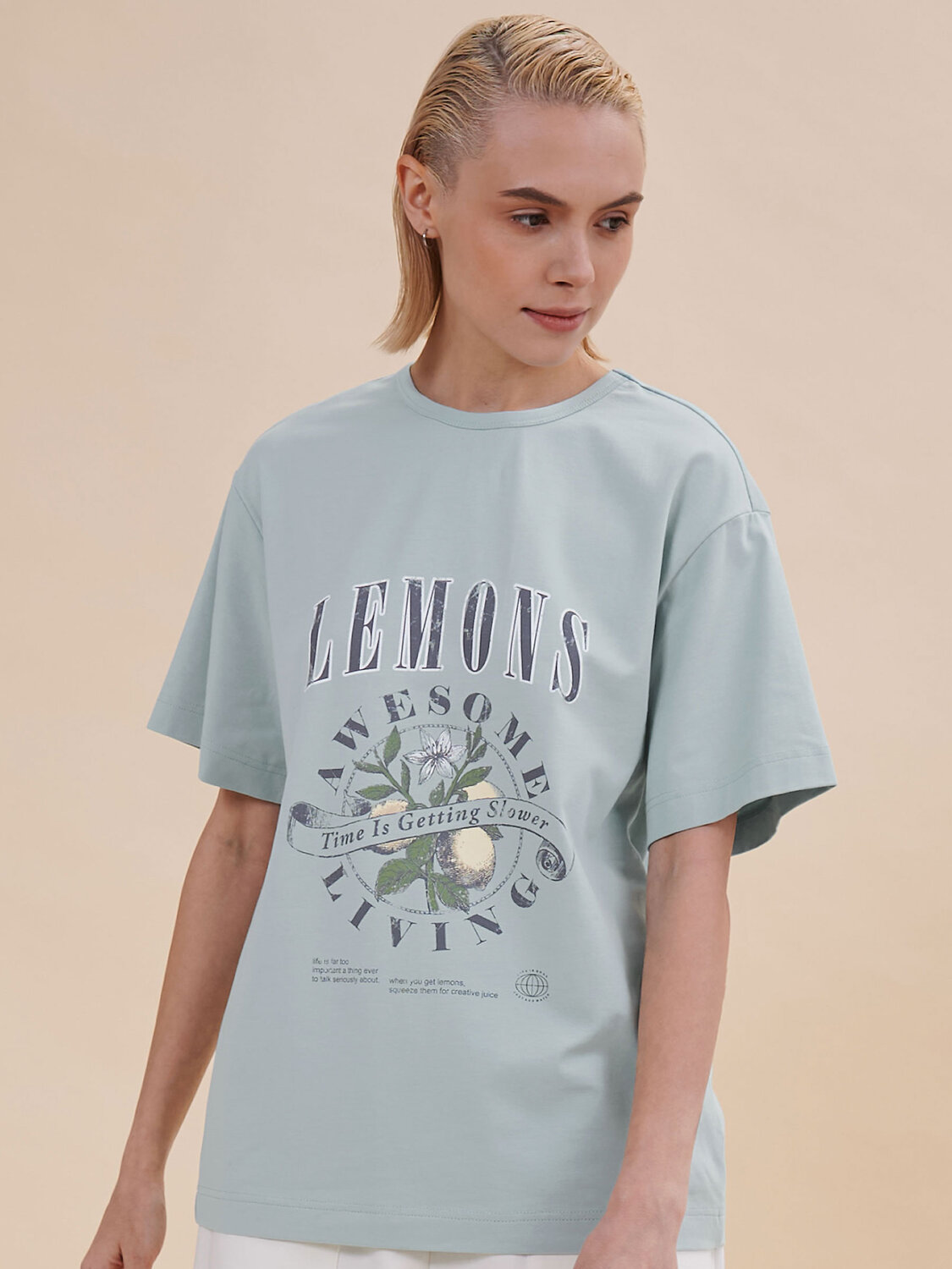 Женская футболка с принтом. Стильная и удобная футболка среднего объема со спущенным плечом подарит вам комфорт и свободу движения. Джемпер такого силуэта скрывает недостатки фигуры и подчёркивает достоинства. Майка с прямыми рукавами идеальна для повседневной носки. Она неприхотлива в уходе. Трикотажная футболка украшена трендовым принтом в духе садоводческих клубов по переду. Надписи переводятся: "лимоны", "потрясающее времяпрепровождение", "время идёт медленнее", "жизнь — слишком серьёзная штука, чтобы говорить о ней всерьёз", "когда вы возьмёте лимоны, выжмите из них творческие соки", "жизнь хороша", "просто добавь воды". Принт качественный и стойкий — без проблем переносит многочисленные стирки. В составе ткани преобладает высококачественный хлопок — футболка мягкая, приятная на ощупь и позволяет коже дышать. Эластан помогает изделию надолго сохранить первозданную форму. Джемпер представлен в следующих актуальных цветах: чёрный, голубой, синий, жёлтый, кремовый, зелёный, белый. Размерная линейка: XS (42): S (44): M (46): L (48): XL (50). Идеально и для женщин, и для девушек, и для девочек-подростков. Базовая футболка среднего объёма универсальна, отлично подходит для работы, учёбы, спорта, прогулок, отдыха, а также для дома и сна. Хлопковая футболка легко сочетается с различными брюками, юбками и шортами. Её можно носить летом, зимой и в демисезон (осенью и весной). Модная футболка — это прекрасный подарок сестре, подруге или маме на любой праздник. Выбирайте нужный размер по таблице размеров на фото. Цвет товара на экране вашего устройства может отличаться от цвета изделия вживую.