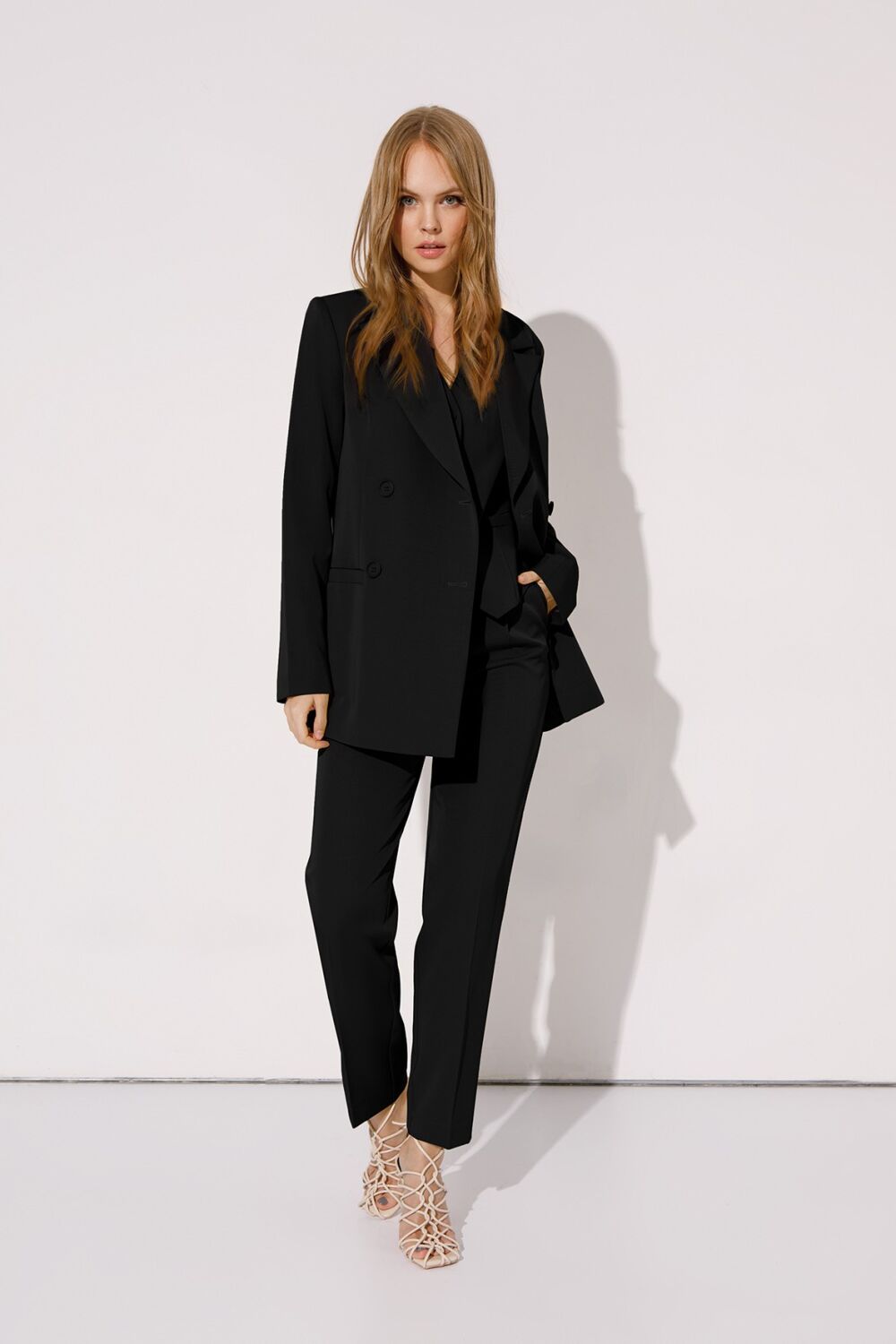 Длина жакета по спинке около 70/72 см, длина рукава около 61см; длина жилета по спинке около 48,5/51,5 см; длина брюк по боковому шву с поясом около 98/99,5 см