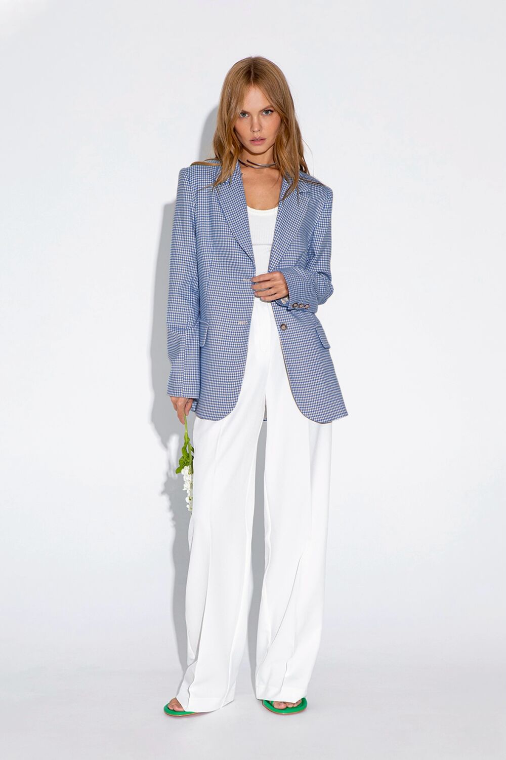 Текстильный комплект- двойка из жакета в клетку и брюк-палаццо