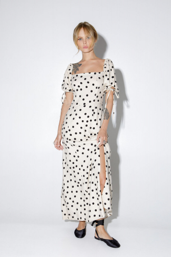 Свободное платье-рубашка с воланами. Детали: платье прямого силуэта, спущенная линия плеча, рубашечный воротник, застежка на петли и пуговицы, длинные рукава с резинкой.