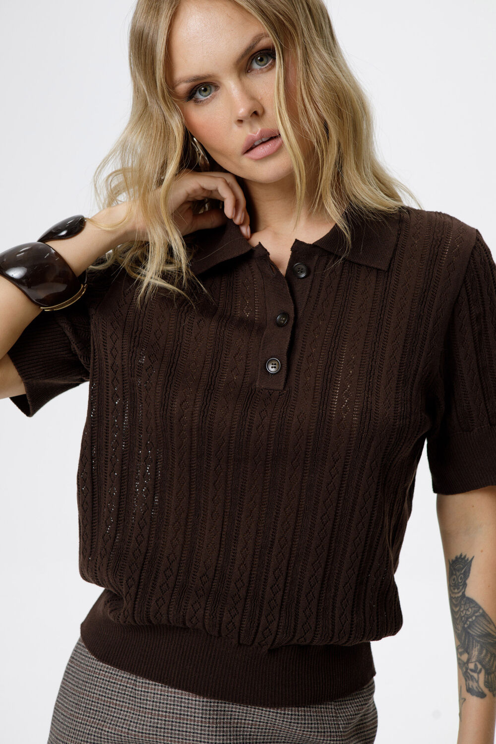 Хлопковое свободное поло ажурной вязки.зон: Осень-Зима