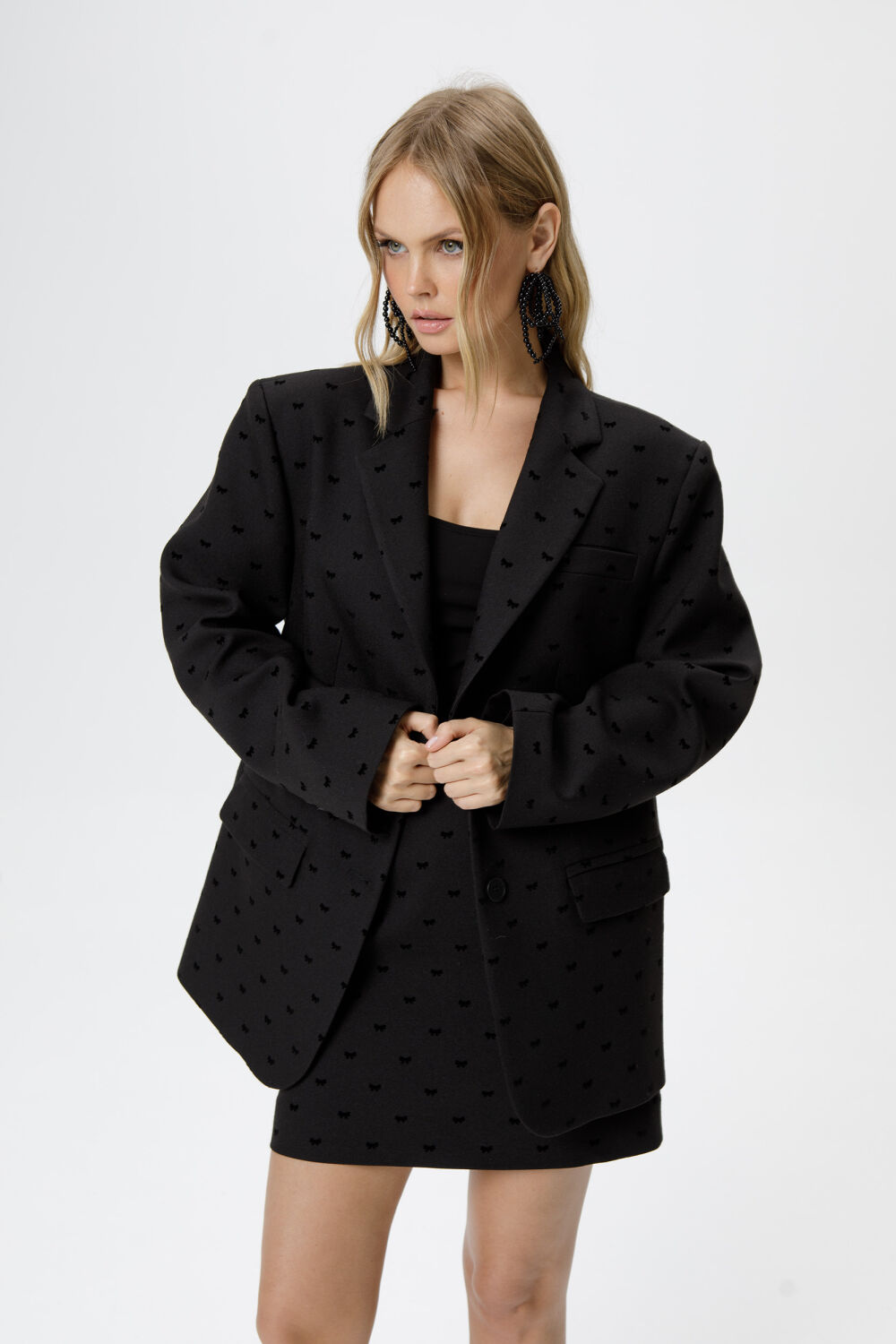 Оверсайз жакет из костюмной ткани с бантиками из флока.кс-3%; Подкладка- Вискоза-45%; ПЭ-55%;