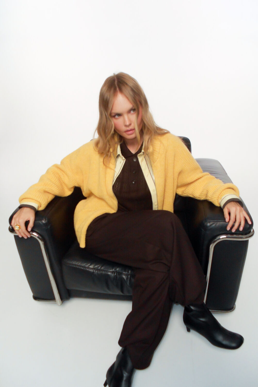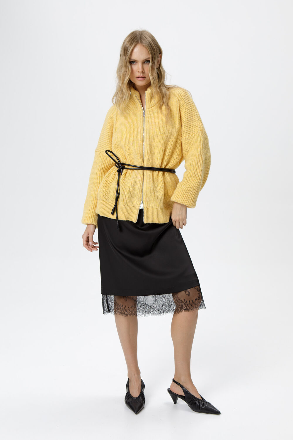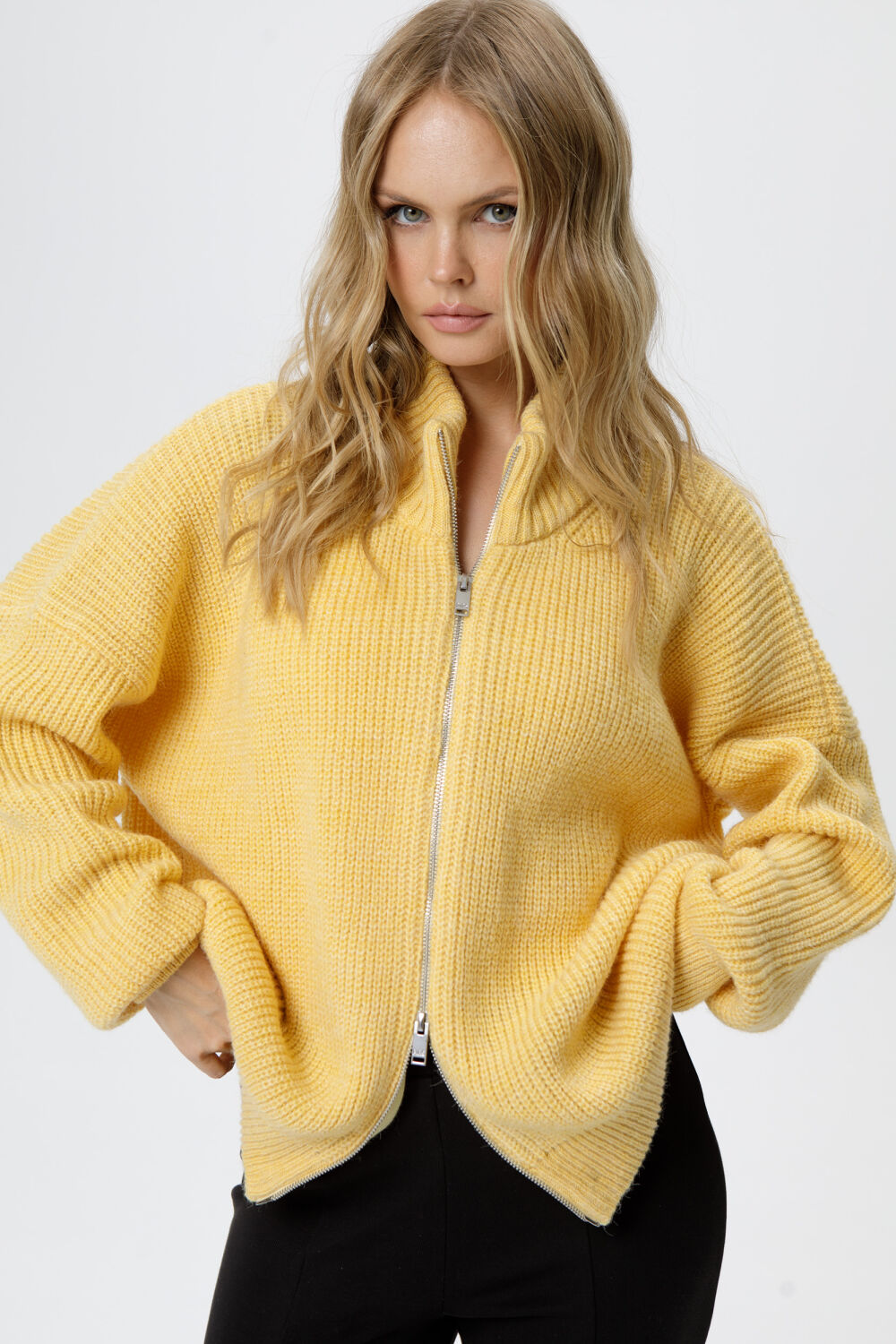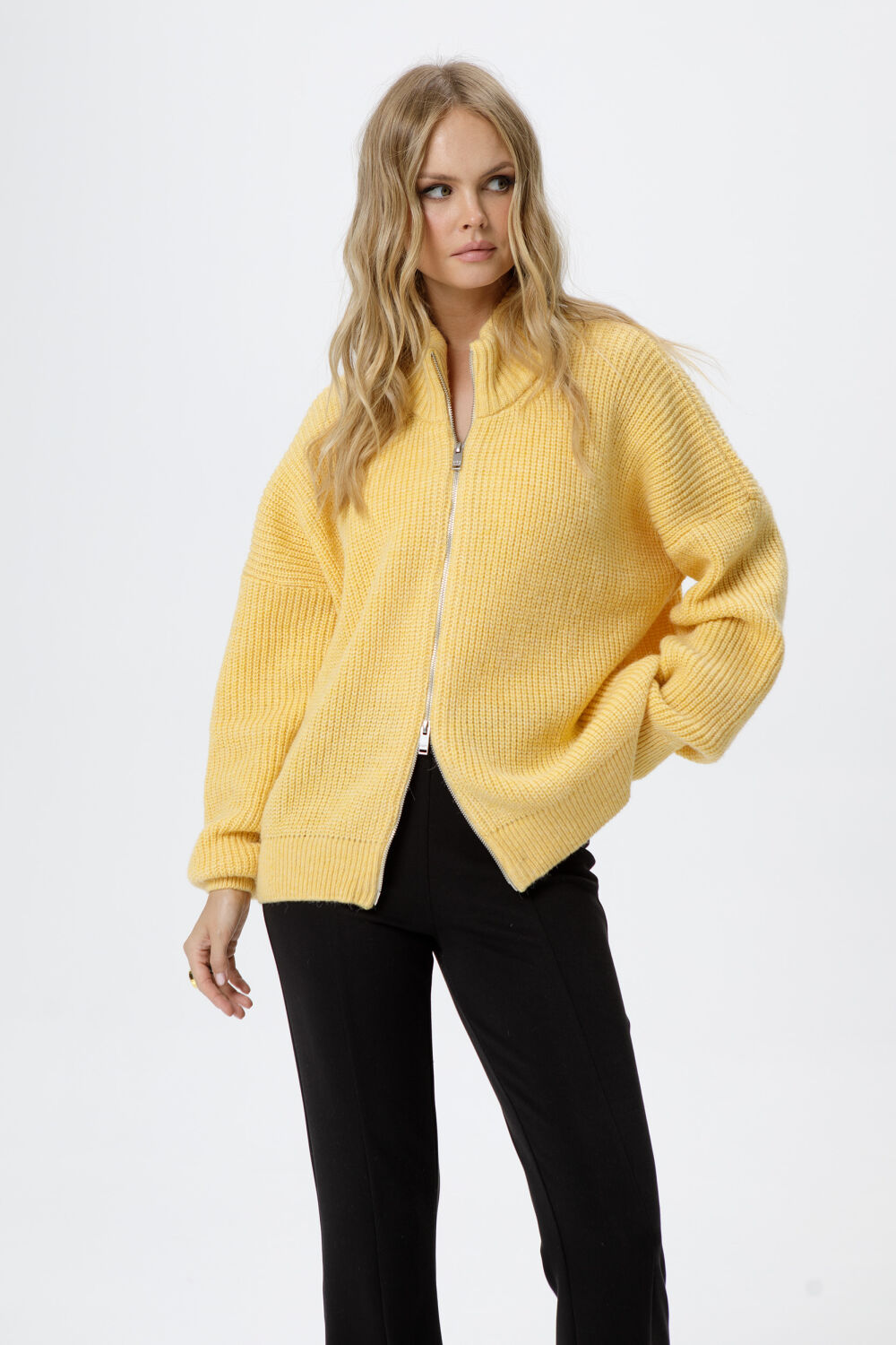 Вязанный объемный жакет на молнии с добавлением шерсти.>