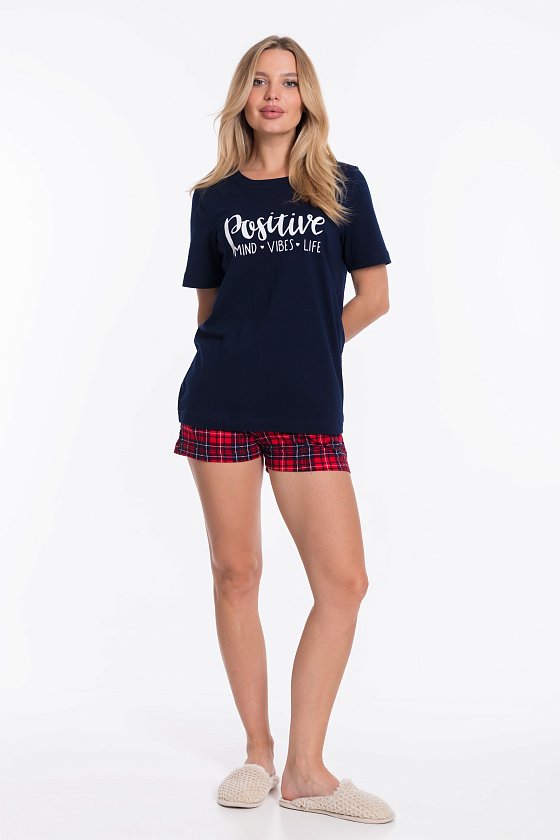 Женская пижама — отличный выбор для комфортного сна или отдыха. Она состоит из футболки и шорт, выполненных из мягкого и приятного к телу хлопкового полотна.
