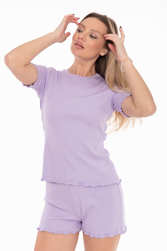 Нежная и комфортная женская пижама из кашкорсе-модала идеально подходит для отдыха и сна. В комплект входит футболка с коротким рукавом и круглым вырезом горловины, а также лаконичные шорты. Все края — рукавов, футболки и шорт — аккуратно обработаны на микрооверлоке, что придаёт изделию аккуратный, изящный вид. Шорты выполнены на удобной эластичной резинке и не имеют карманов, формируя лёгкий и комфортный силуэт. Идеальный выбор для тех, кто ценит мягкость, удобство и минималистичный стиль в домашней одежде.
