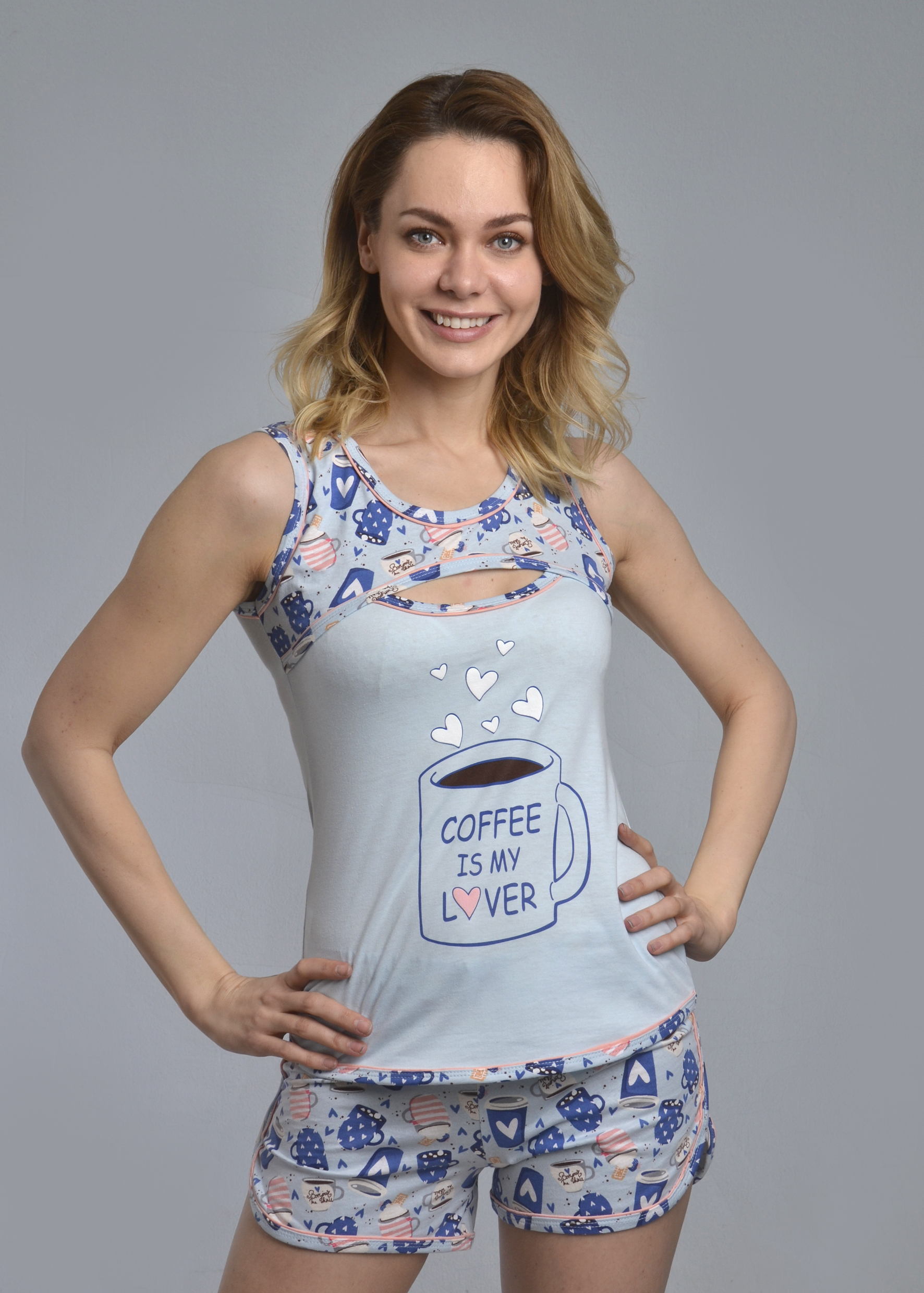 Комплект с шортами "КОФЕ" (голубой №10)
