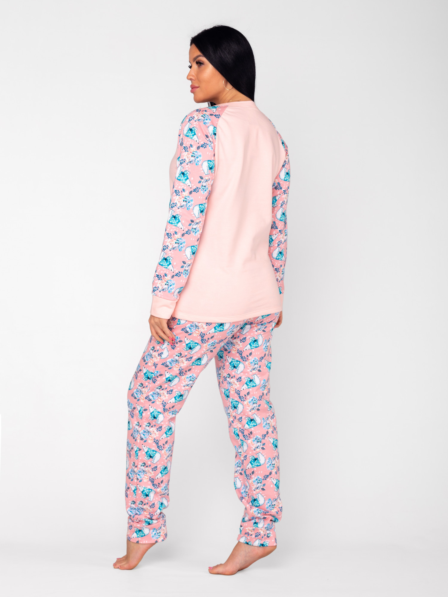 Пижама женская футер начес с брюками "ЗИМА" РОЗОВЫЙ