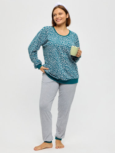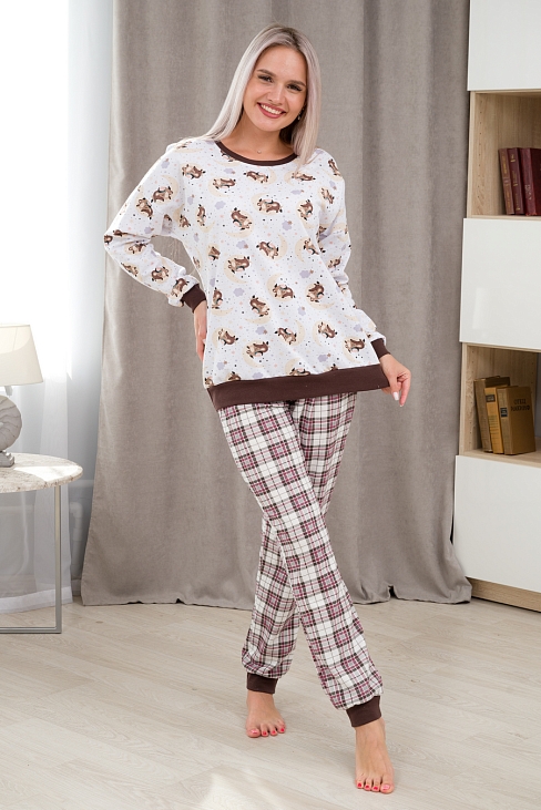 Пижама женская из джемпера и брюк из футера Олененок бычок из трикотажного полотна. Уютная домашняя одежда состоит из кофты с длинным рукавом и брюк. Штаны на резинке, толстовка прямого кроя.